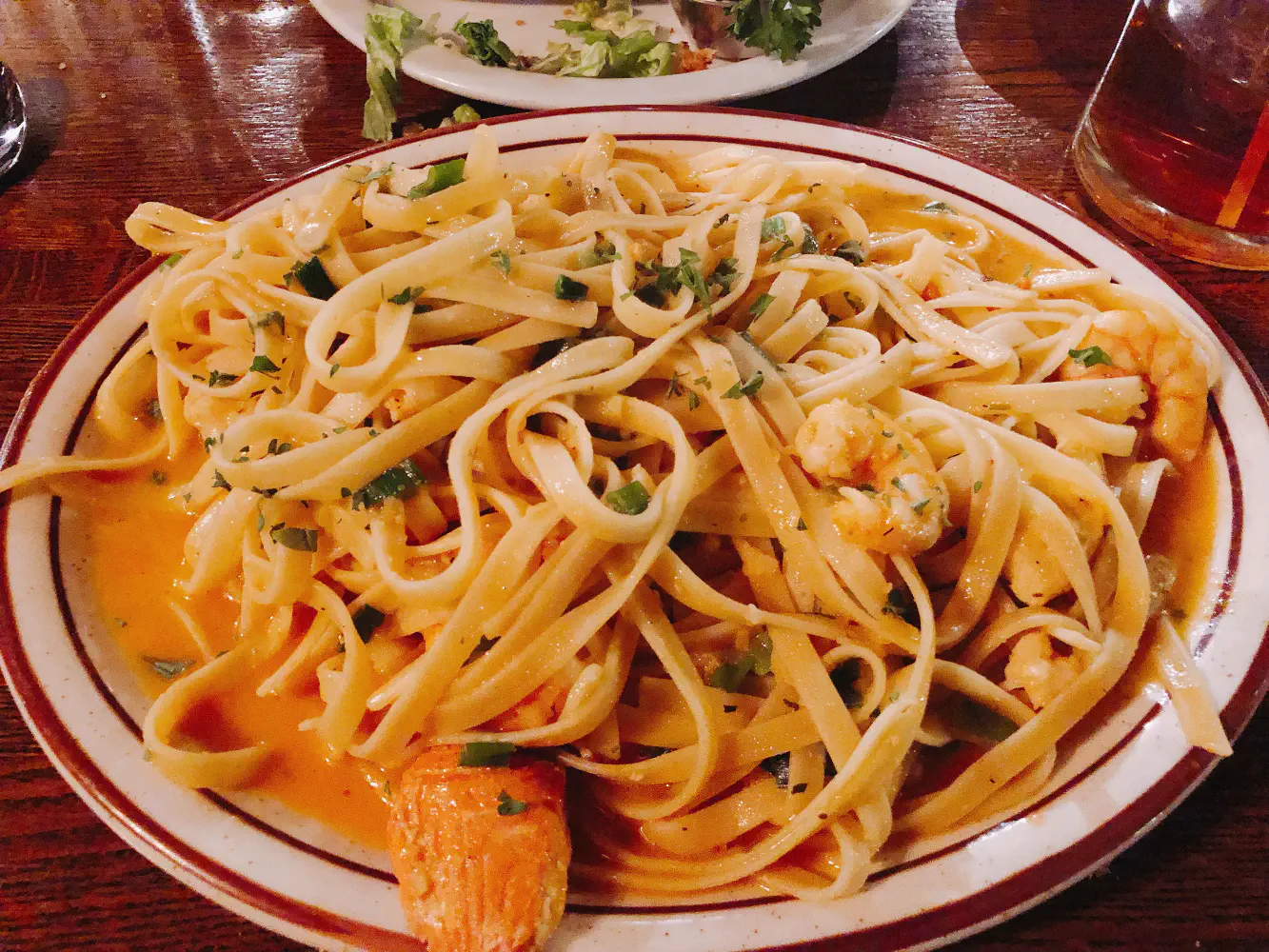 The garlic butter seafood pasta is exactly what you think it sounds like. It’s a plethora of salmon/halibut chunks and shrimp. It’s filling and honestly you couldn’t go wrong with this.