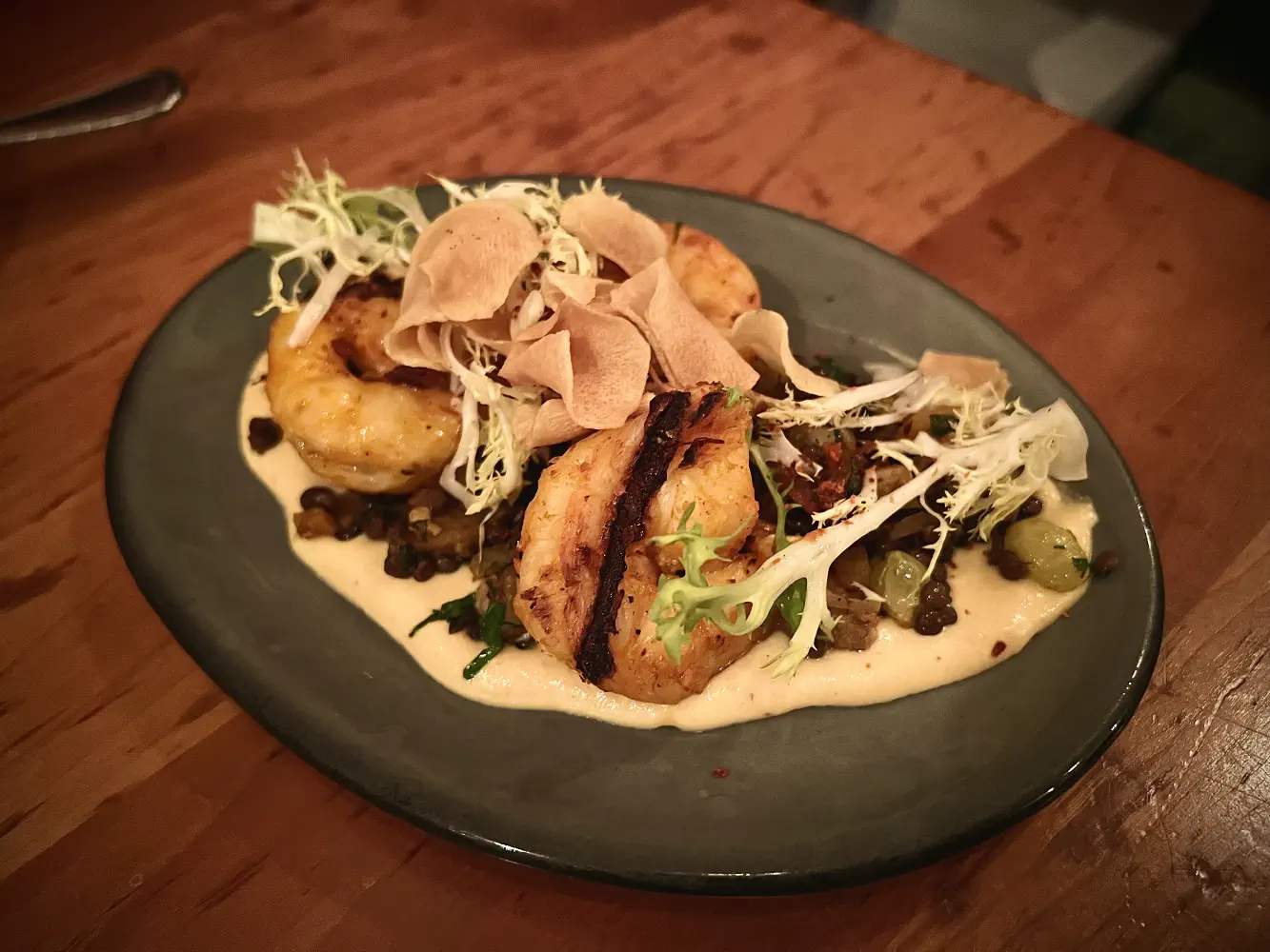The Shrimp ($18) came with lentils, kohlrabi, golden raisins, sunchoke, and cashew skordalia. Despite the fact that it came with just 3 pieces of wonderfully and perfectly grilled shrimp, the overall flavors of this dish were very good. The entire shrimp was edible, and the tail surprisingly had a lot of nice flavors in it.