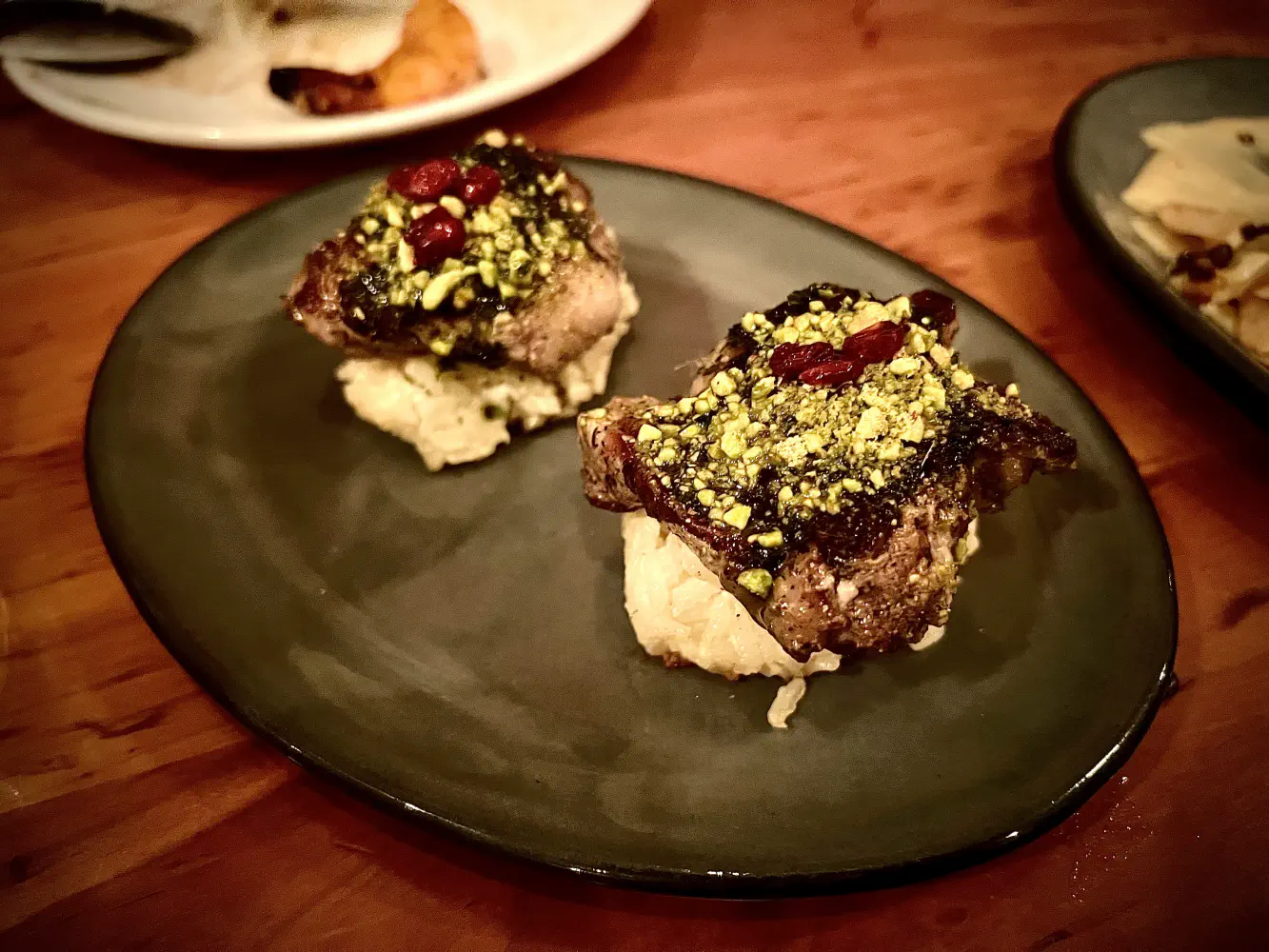 The Vermont Quail Kebab ($17) came with baharat spice, barberries, and pistachio. This was disappointing for the price, but the flavors of this tasted like a really tender poultry meat roasted on a kebab. The meat was flat as opposed to cube.