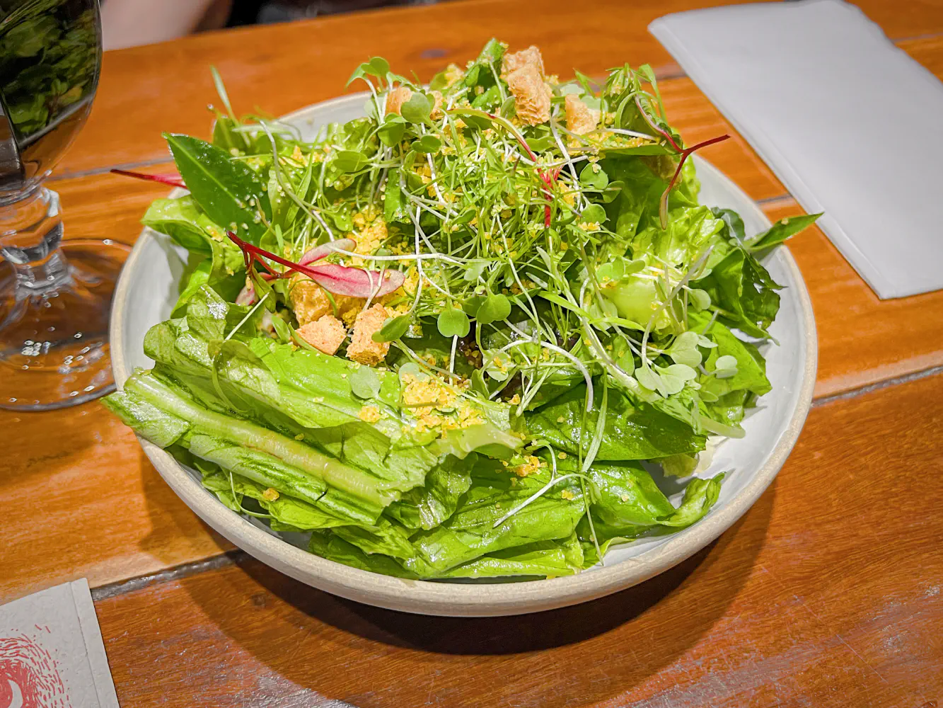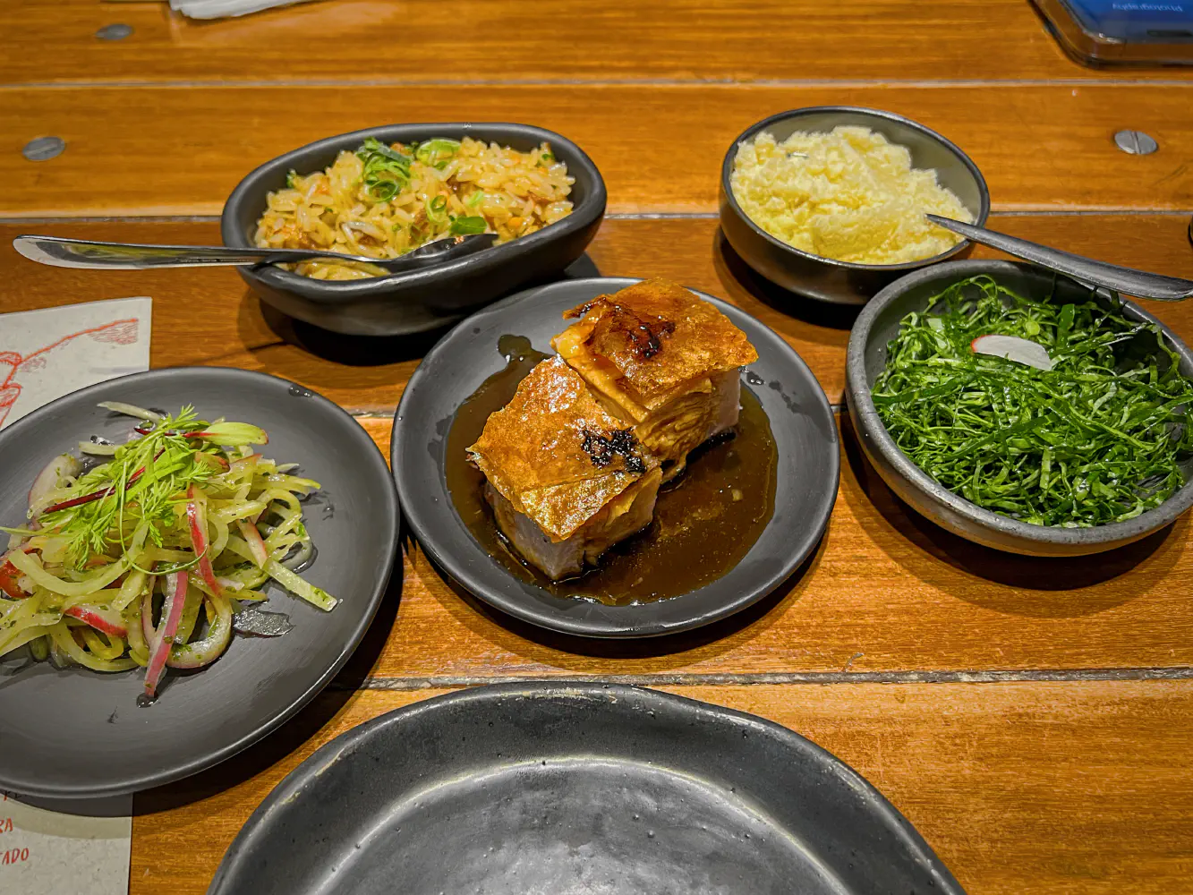 This was all very good. The pork chunks were dense and very tender. The farofa was one of the best my partner has ever eaten. The kale greens were thinly sliced, garlicky, and delectable.