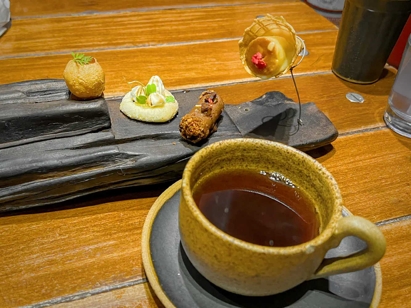 The sandwiches course came with a pairing of Bota Mel Na Boca, which was passion fruit mead, brut sparkling wine, and beer reduction. This mead was by far one of my favorite things I’ve had in a while. I would definitely buy this at the store if this was sold in the US markets.