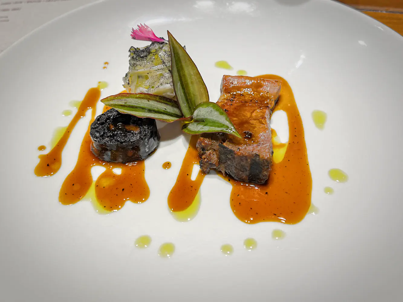 The fifth pairing came with a Cademusa Syrah organic red wine. Unfortunately, they did not have the Alvarinho wine that they listed on the menu. The Syrah was a decent complement to the next dish, but I very much would have preferred the Alvarinho.
