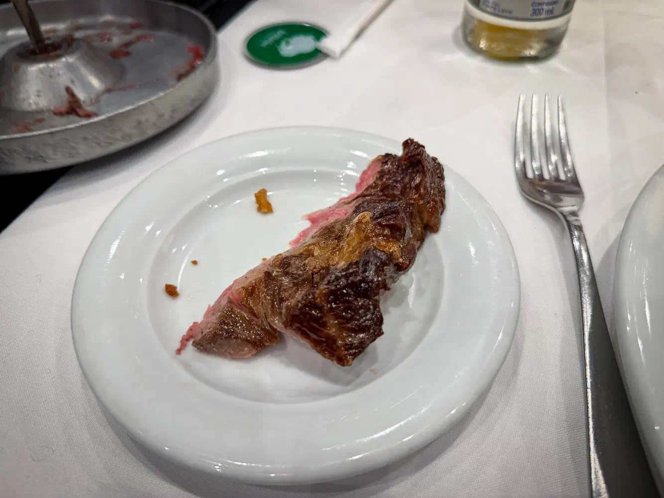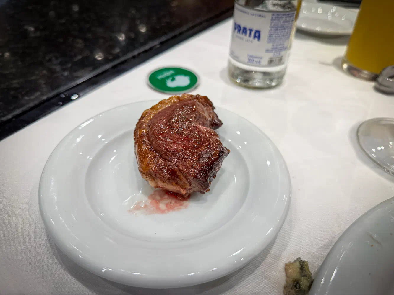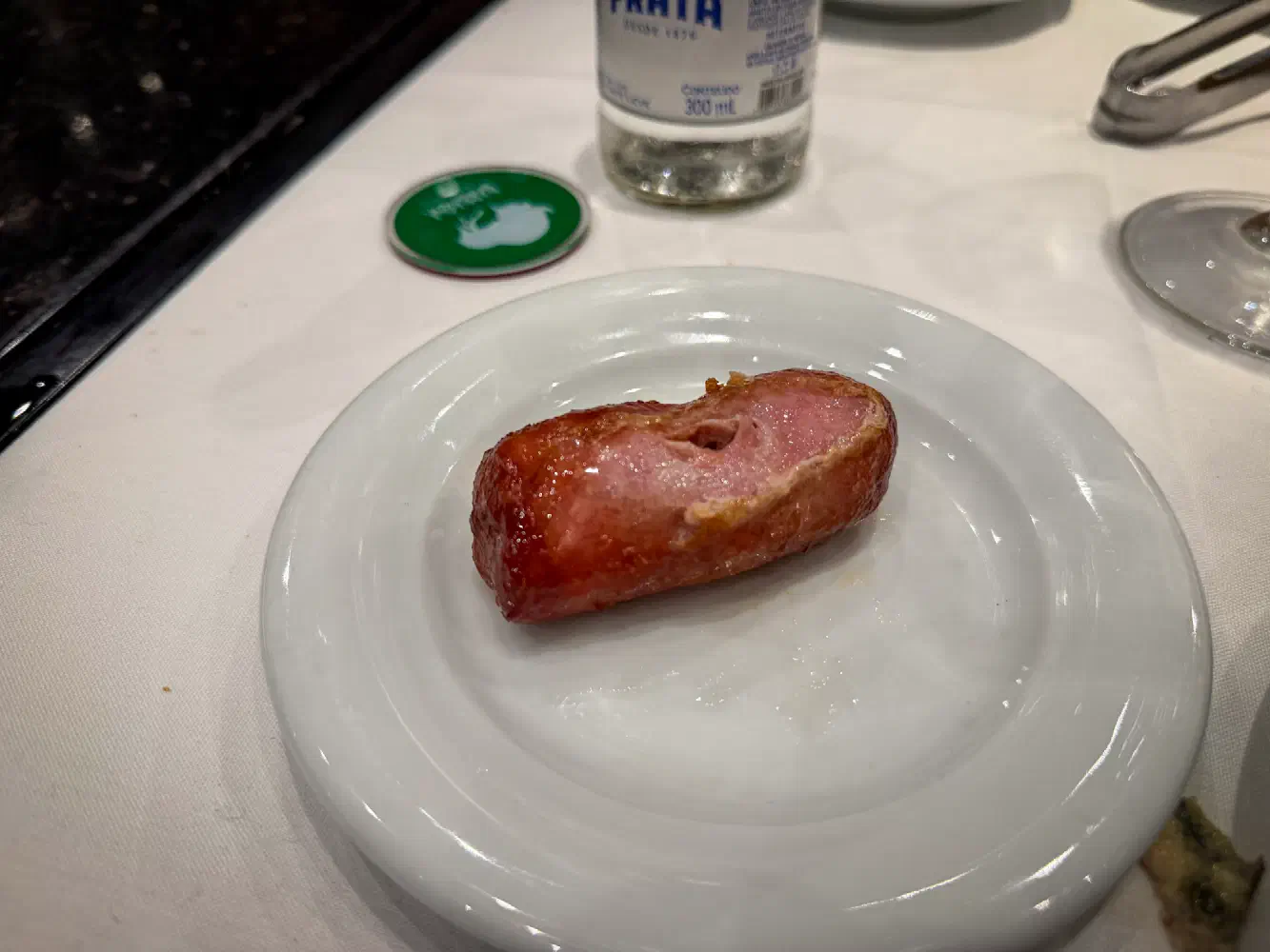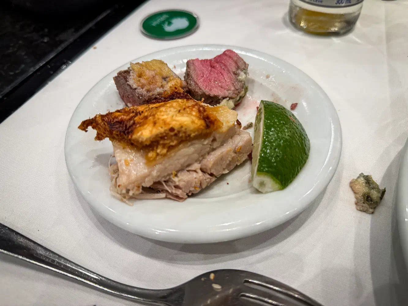 The first cut of meat that came by was actually from a grilled plate. What was interesting about this rodizio was they had way more prepared skillets or plates of meat than other restaurants I’ve been to in the US. I actually kind of enjoyed this experience over pulling off the skewers because there were some notably different cuts of meats and presentations.