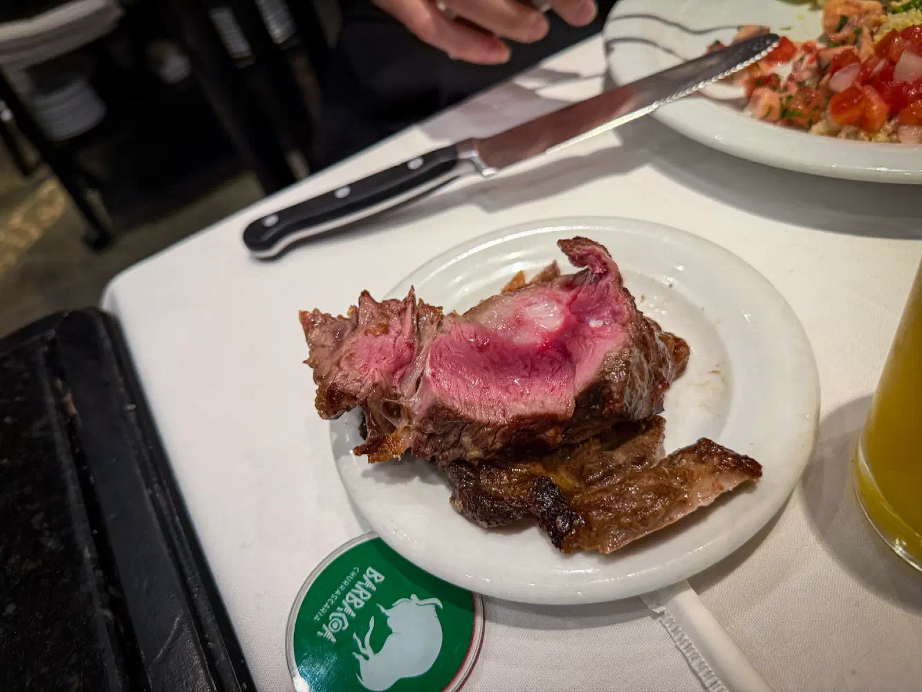 The mini picanha came on a spit, and they gave me the whole piece. This was actually cooked very nicely and had some nice flavors, but again as you can tell from the picture, the outside doesn’t have much seasoning on it. Luckily, the inside was medium and not over cooked too much.