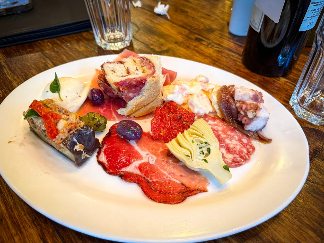 There is a 2-4 hour wait to get a table on weekend nights. Thankfully we got there early and sat down right away. The antipasto may be more expensive than your dish itself. Portions serve two people!