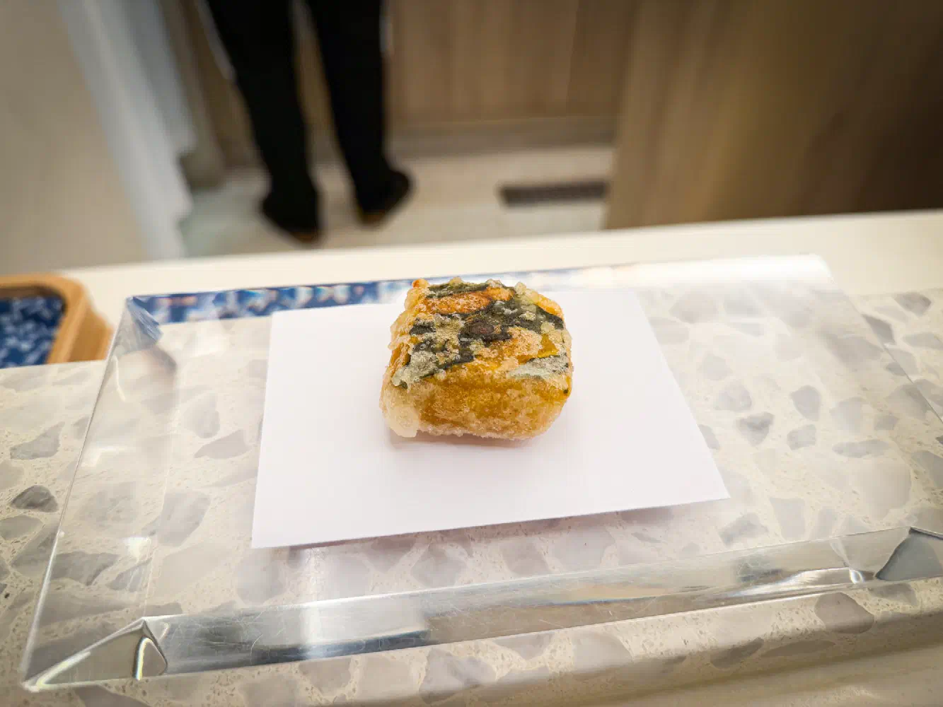 This is Kanoe’s Atsuyaki Tamago, which was so silky smooth and soft. What’s interesting about this is it’s not as sweet as tamago, and it has a lot of fish in it. The chef was explaining how they make this and how difficult it is because every measurement and preparation must be perfect. I’d honestly prefer this tamago over every other tamago I’ve tried. The chef mentioned he got a lot of inspiration from dining at Jiro’s in Japan.