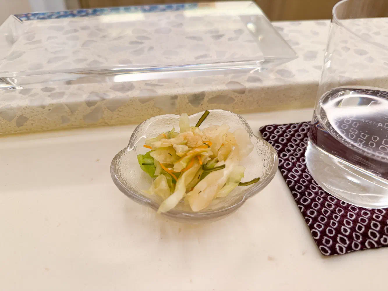 They served ginger earlier on, so this is now the cabbage. It tastes similar to other restaurants that serve this stuff to reset your palette.