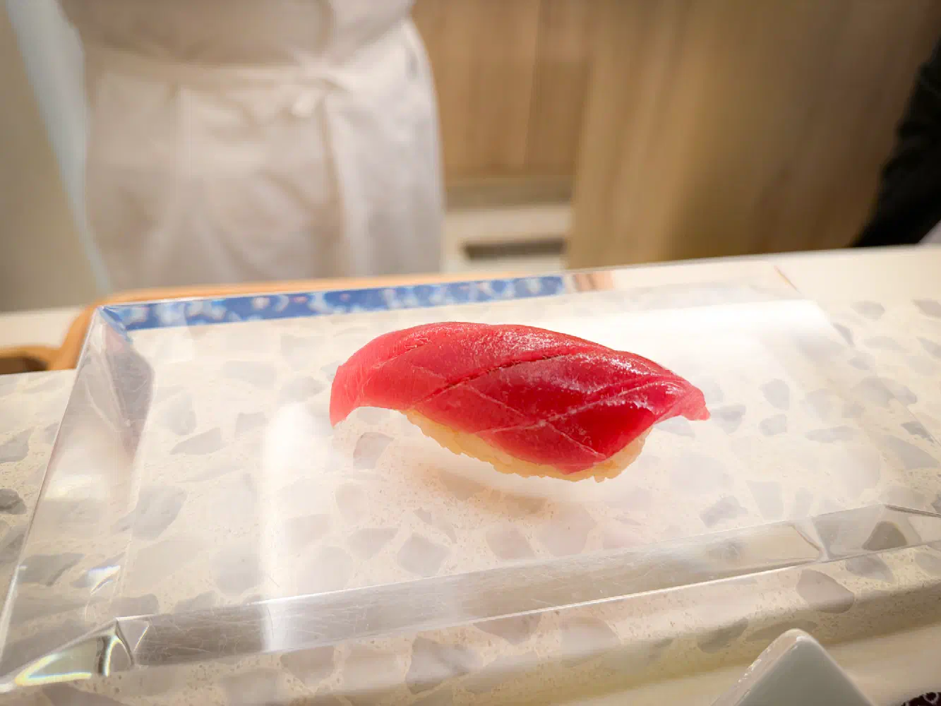 The Tuna Akami is the prized back muscle of a bluefin tuna. This tuna piece was very delectable.