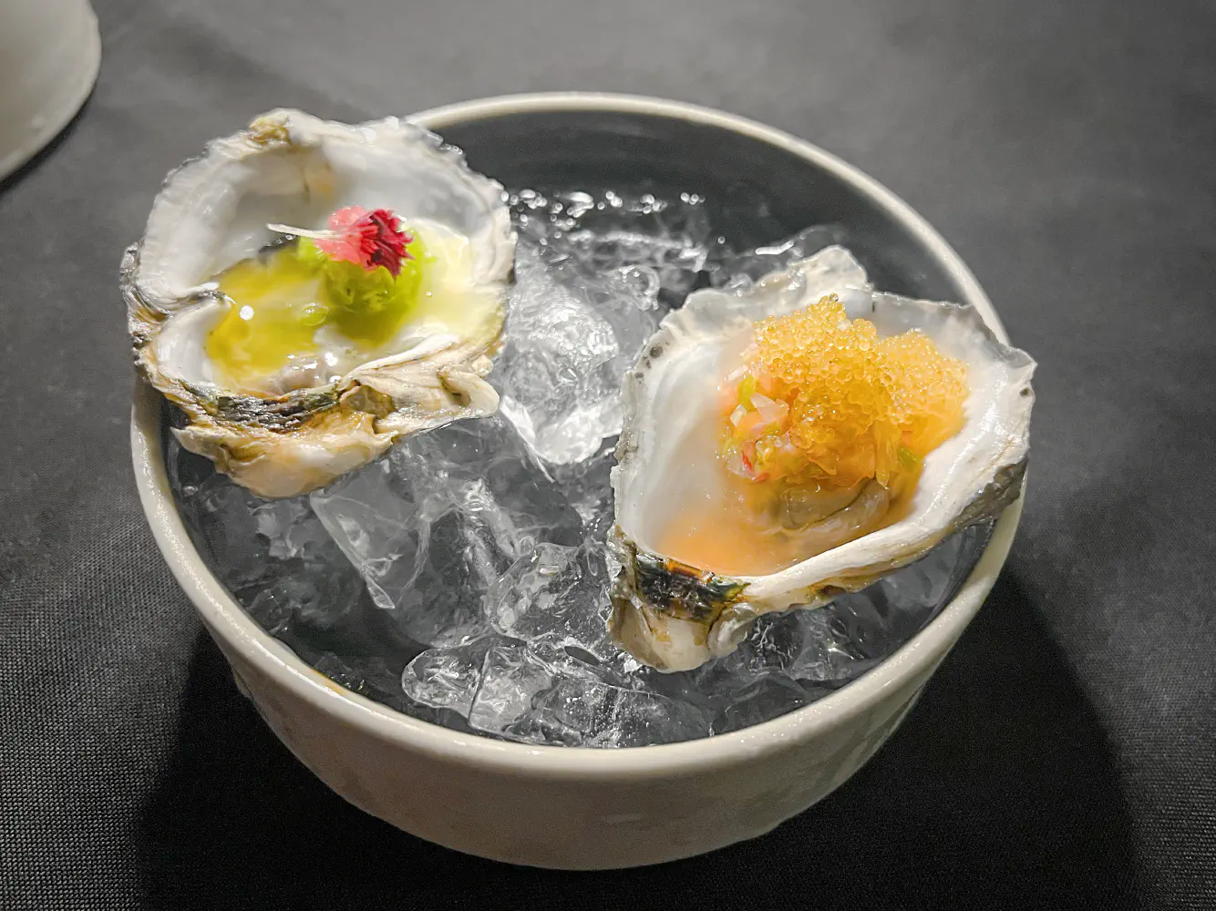 The right oyster was my preference, more so than the left one, due to the texture of the fish eggs and the flavor of the cherry tartare vinaigrette. In addition, these oysters were definitely not briny, and they had pretty good flavors. They did remind me a bit of west coast oysters.