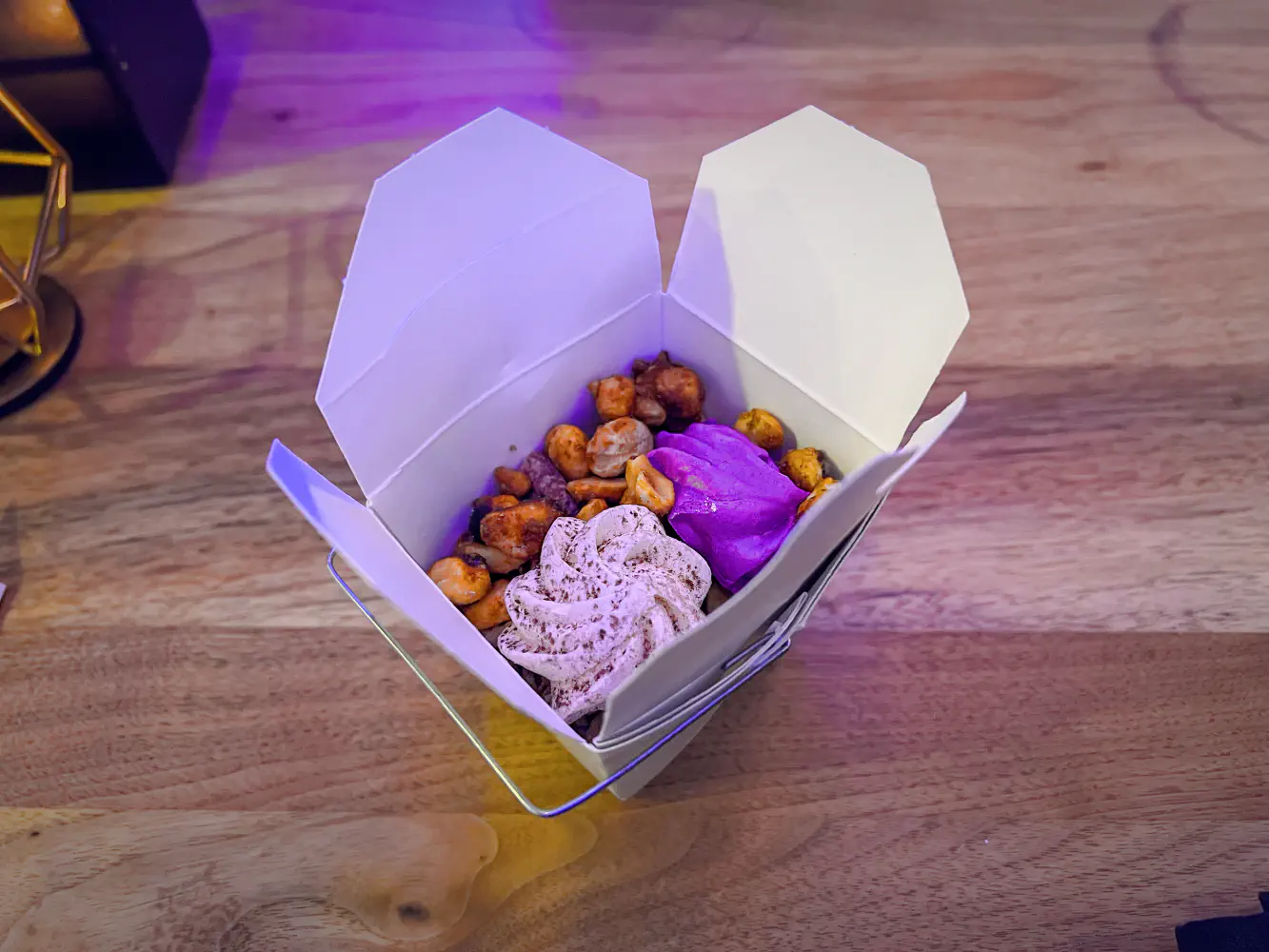 They also gave us a small box of gold covered candied nuts to take home as well. These are marinated in the same seasoning as Guilty Pleasures course.