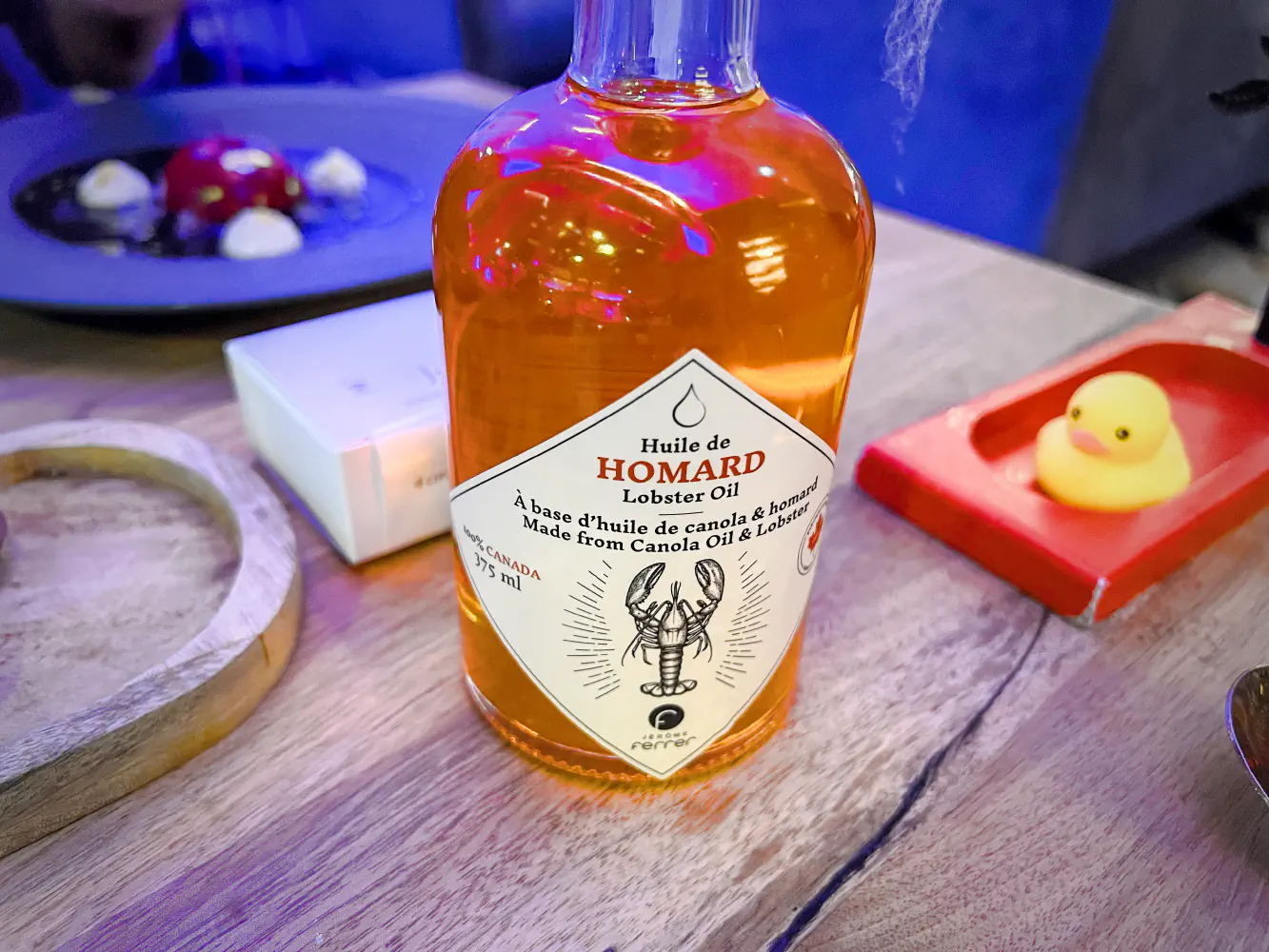 I’m not sure what the reason or if this is normal, but they gave us a takeaway bottle of 375 milliliters of lobster oil. We originally brought only carry-on luggages, and it was because of this we had to check in one of our bags. The lobster oil when we tried at home was actually really good. It works great as a dressing finisher. You get very bold flavors of lobster shell.