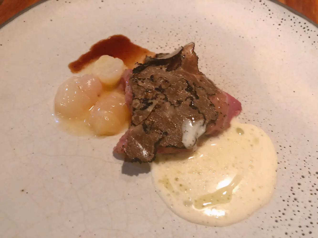 The aged lamb with fermented black truffle was a different story. The lamb was very tender as if it was sous vide and briased, so it was easy to break apart. There are some starchy small transparent-like potatoes that tasted like each piece was loaded with butter in it. They said that it’s the natural taste of it. The dish was also served generously with loads of shaved black truffle on top. This lamb dish exceeded my expectations which were already fairly high.