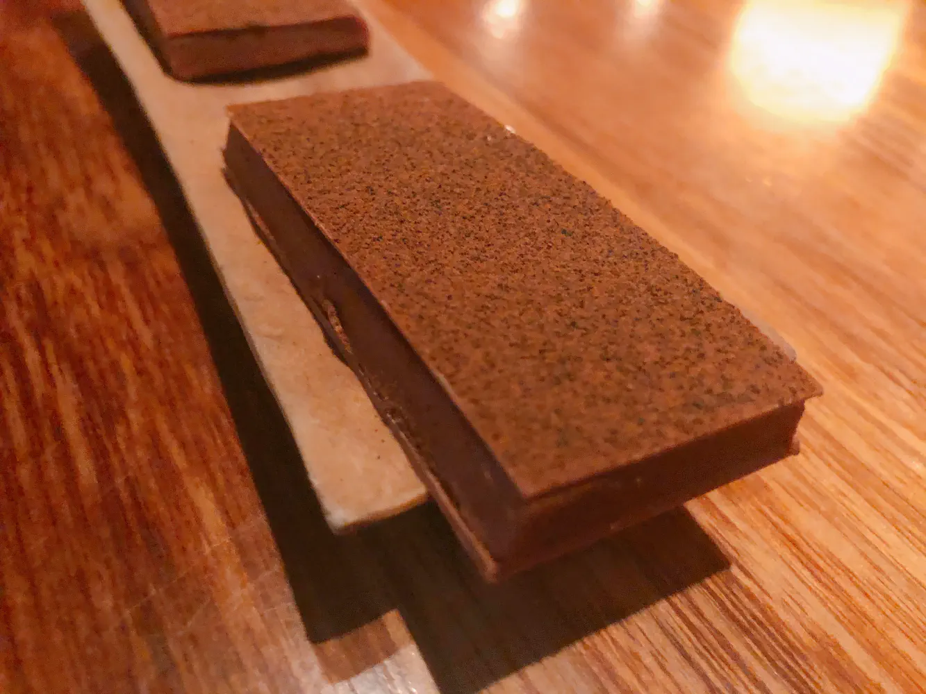 Next came the dessert courses. This was the milk chocolate with shiitake mushroom shavings. Everyone knows that I loathe mushrooms, but this was acceptable. I did not think mushroom could work with chocolate, but it did. The chocolate wasn’t too sweet, so the mushroom shavings added some character to give it a little noise to play with.