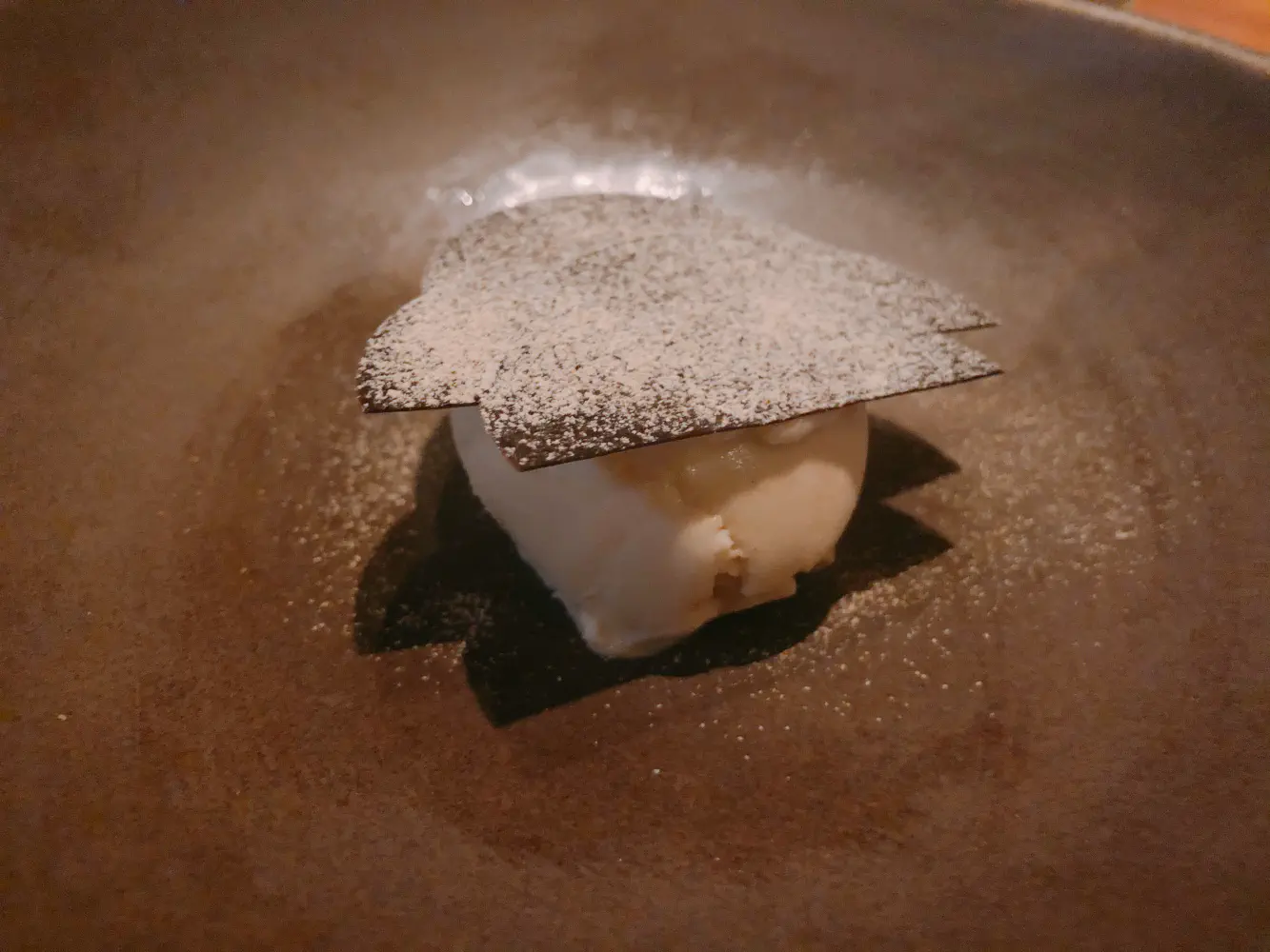 The malted sunchoke ice cream was kind of interesting. In the middle, there was some sour yuzu. The sunchoke has a subtle natural sweetness to it that some find dull, so I can see how that gave a little pop.