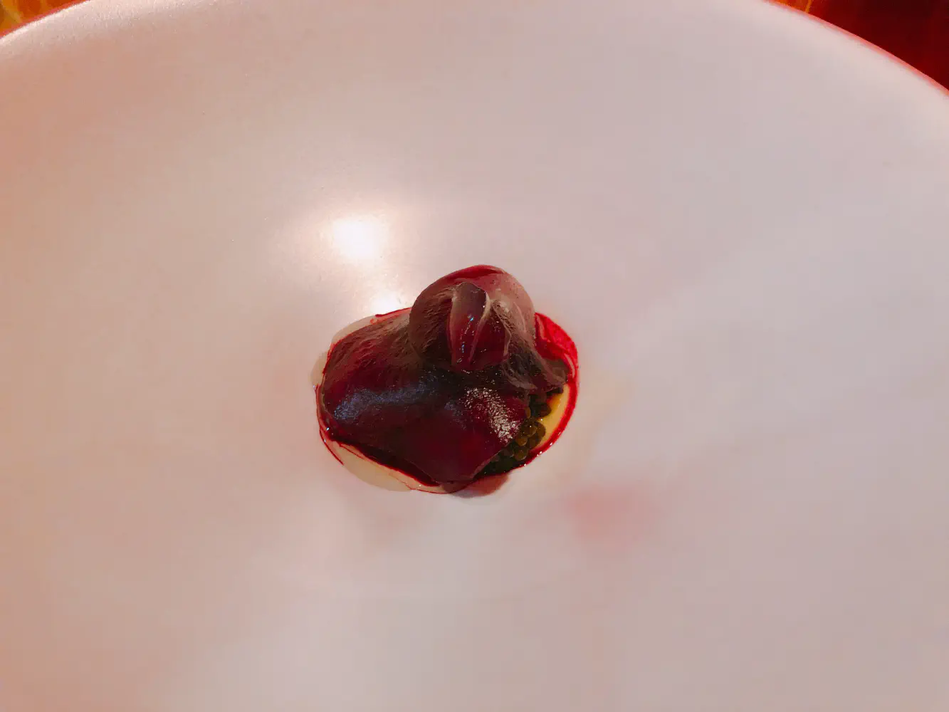The black currant beetroot custard was interesting as well. It looks like a biscuit with some jelly on top, but the top is actually some sort of coffee, and the custard itself was super cold. I thought it would crack like a pie, but it was actually very mushy.