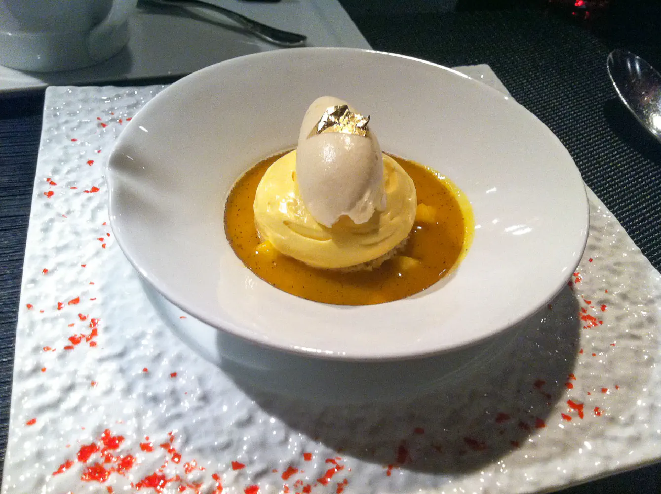 Seventh a.k.a. meat course was an option course, meaning you can choose La Caille or Le Beuf. I actually had the first option which was foie gras stuffed free-range quail with mashed potatoes. I love quail, and I have absolutely no guilt in eating foie gras stuffed quail. The quail was very crispy on the outside. The stuffing inside was basically smashed foie gras blended up. You would think this would be heavy, but it surprisingly wasn’t. The greens on the plate seemed to have some sort of yuzu citrus flavoring in it. The mashed potatoes was very buttery but delicious. I felt portion size for all 3 was good.
