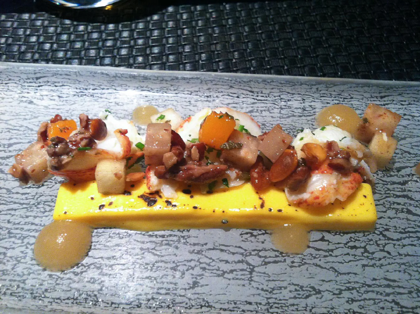 The first course was the chilled main lobster with a pumpkin flan, smoked apple, and a pecan-brown butter vinaigrette. The lobster was pretty good. It was soft and sweet. Coupled with the flan and smoked apple, it was pretty delicious for the cold appetizer.