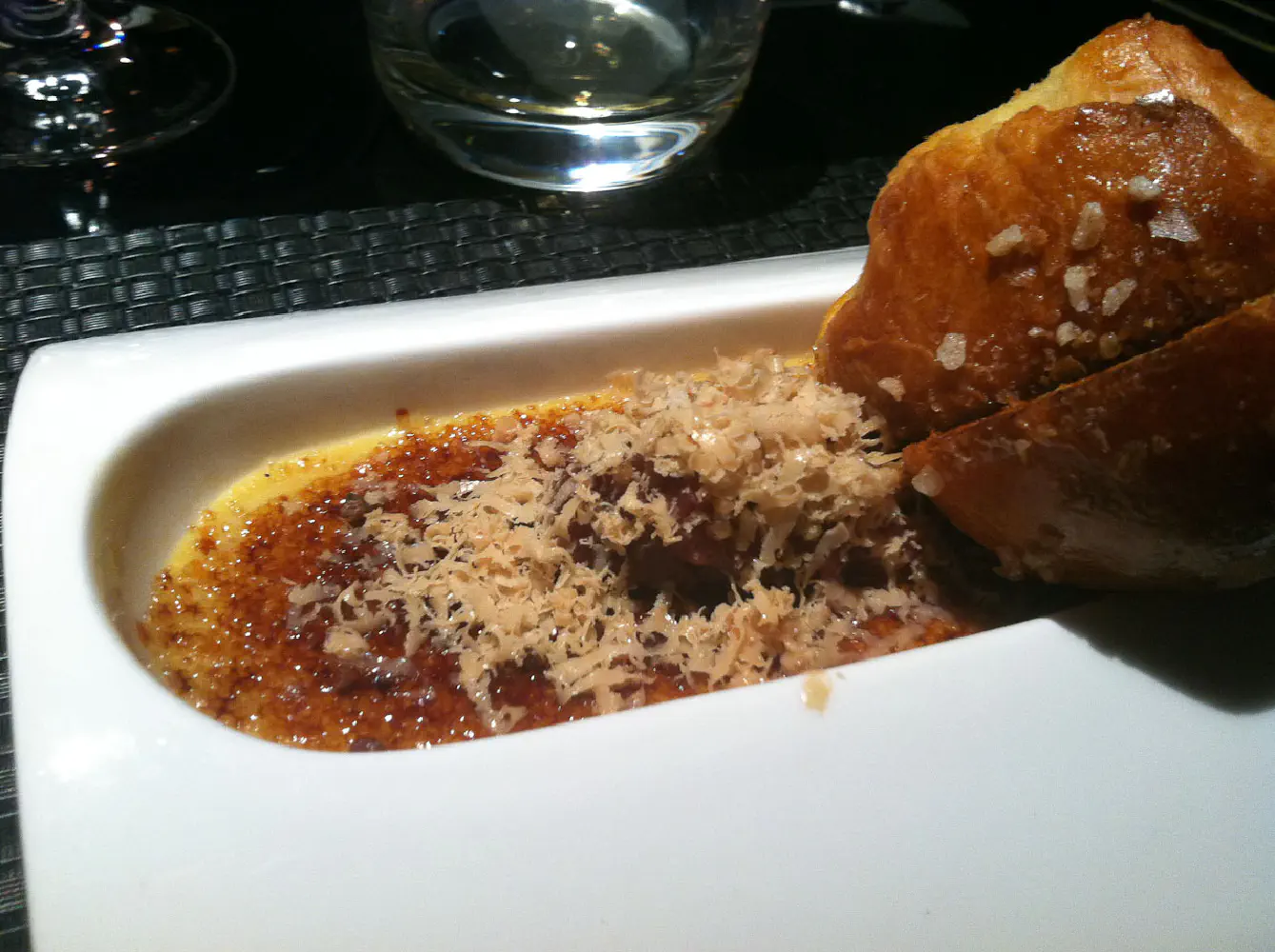 The second course was the foie gras brulee with salted brioche, toasted cocoa nibs, and shaved torchon. This was interesting at first. The foie gras flavor is very strong in the brulee, so to some it might be a little too rich for some. For me, it was fine. I did have an issue with this dish though, and it’s a big one. The brulee by itself was very salty. So salty, that it was borderline difficult to eat. I tried using the brioche to hopefully suppress the saltiness, but that didn’t help at all. The brulee is also very thick and somewhat creamy, so if you are not fond of thick flavored food, you may not like this.