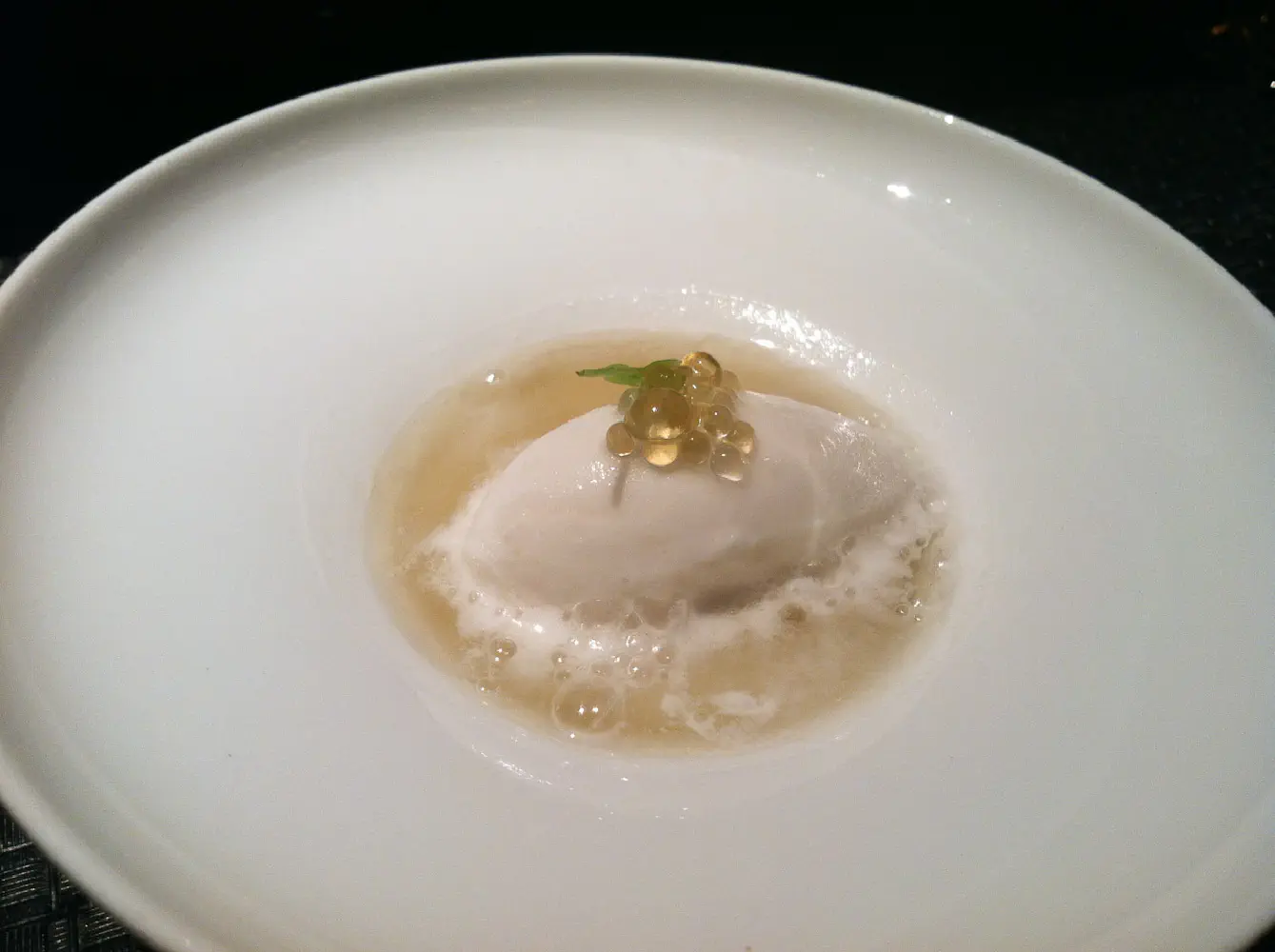 I’m sure the chef(s) knew that this was going to be a very rich tasting menu, so they gave us a palette cleanser. This was very similar to a light lemon sorbet with some foam around it. It definitely helped clean some of the 48 hour beef belly flavor that was stuck to the sides of my mouth.