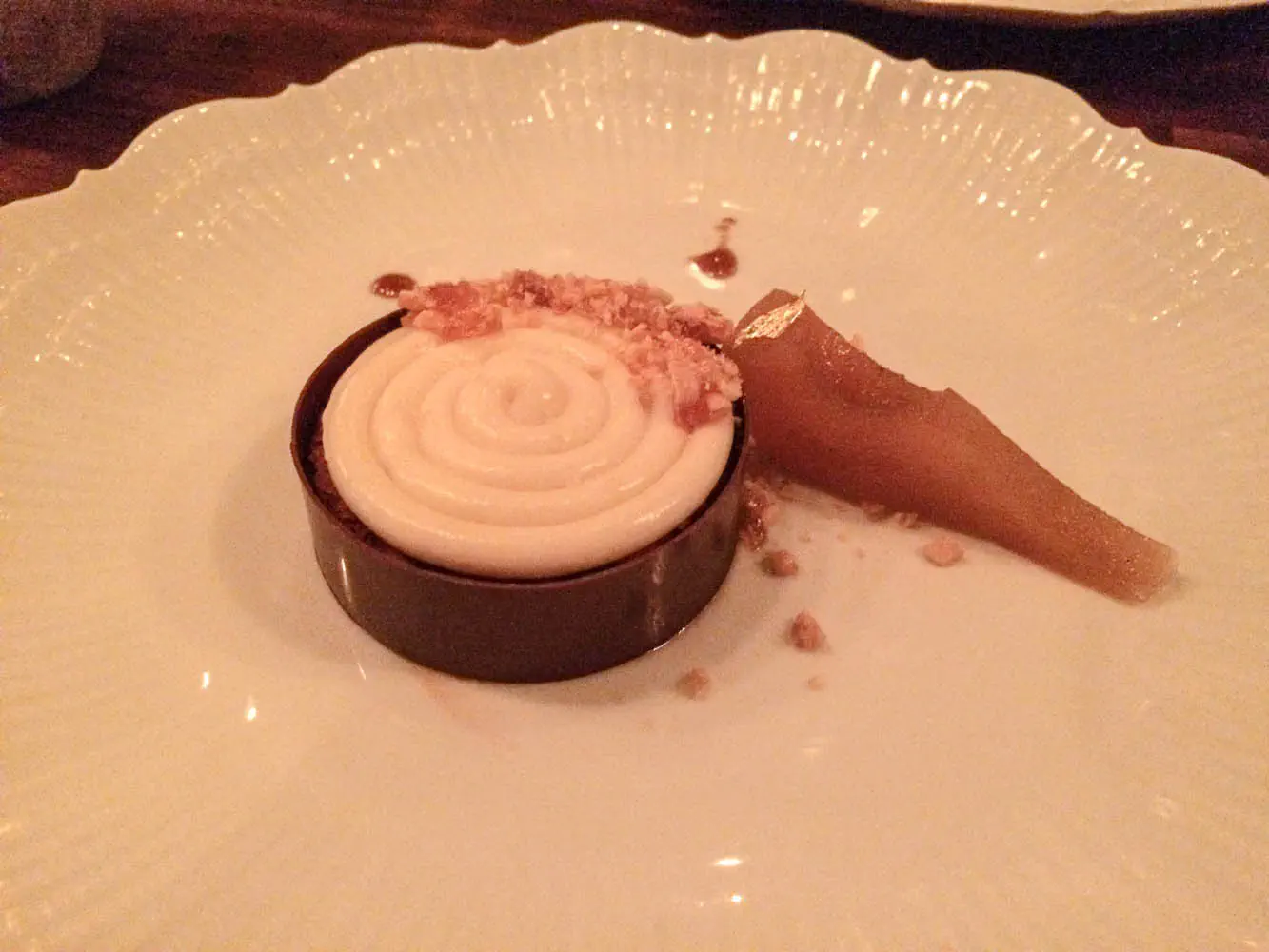 10. Stout Pouched Pear with roasted peanut foam, dark chocolate, and panna cotta. I loved the roasted peanut foam with the panna cotta. There was dark chocolate underneath the panna cotta as well as circled around the perimeter. The stout pouched pear was interesting, but did not leave any particular thoughts about it. I actually liked the previous pear dessert a bit more despite its simplicity.