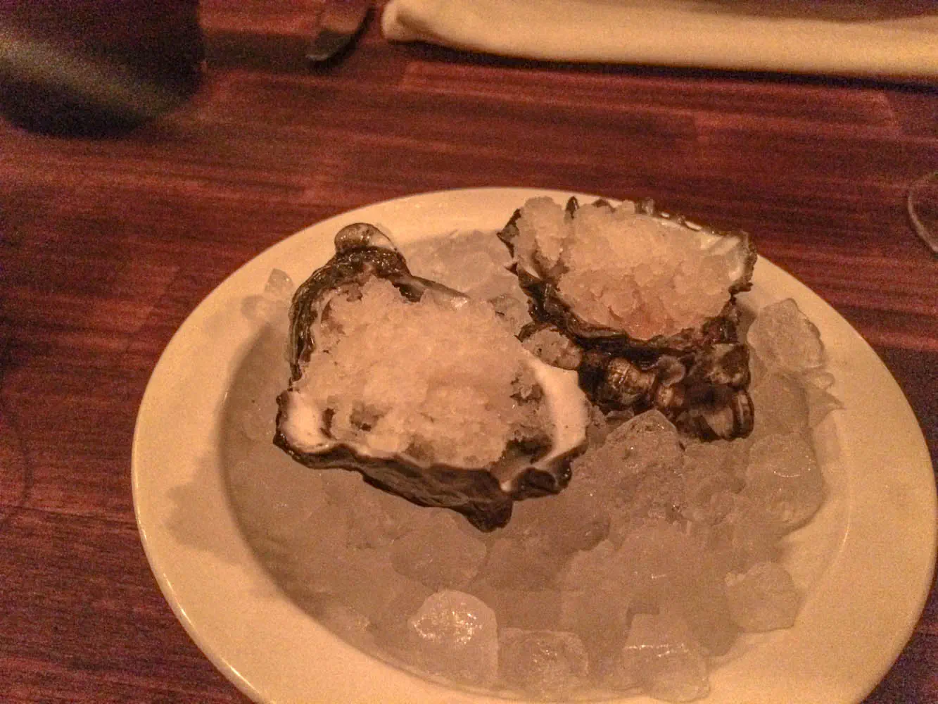 Kumamoto oyster with ice. This was really good. The Kumamoto was definitely very fresh and sweet. I think the ice on top had some pear juices in it, so the water had a little sweetness to it.