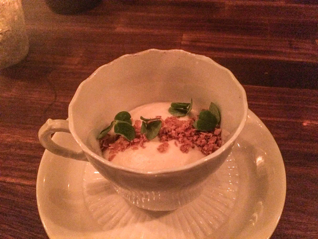 3. Soup with smoked celery root and wood sorrel. This soup was really good. It had this smokey flavor to it, and was warm and rich.