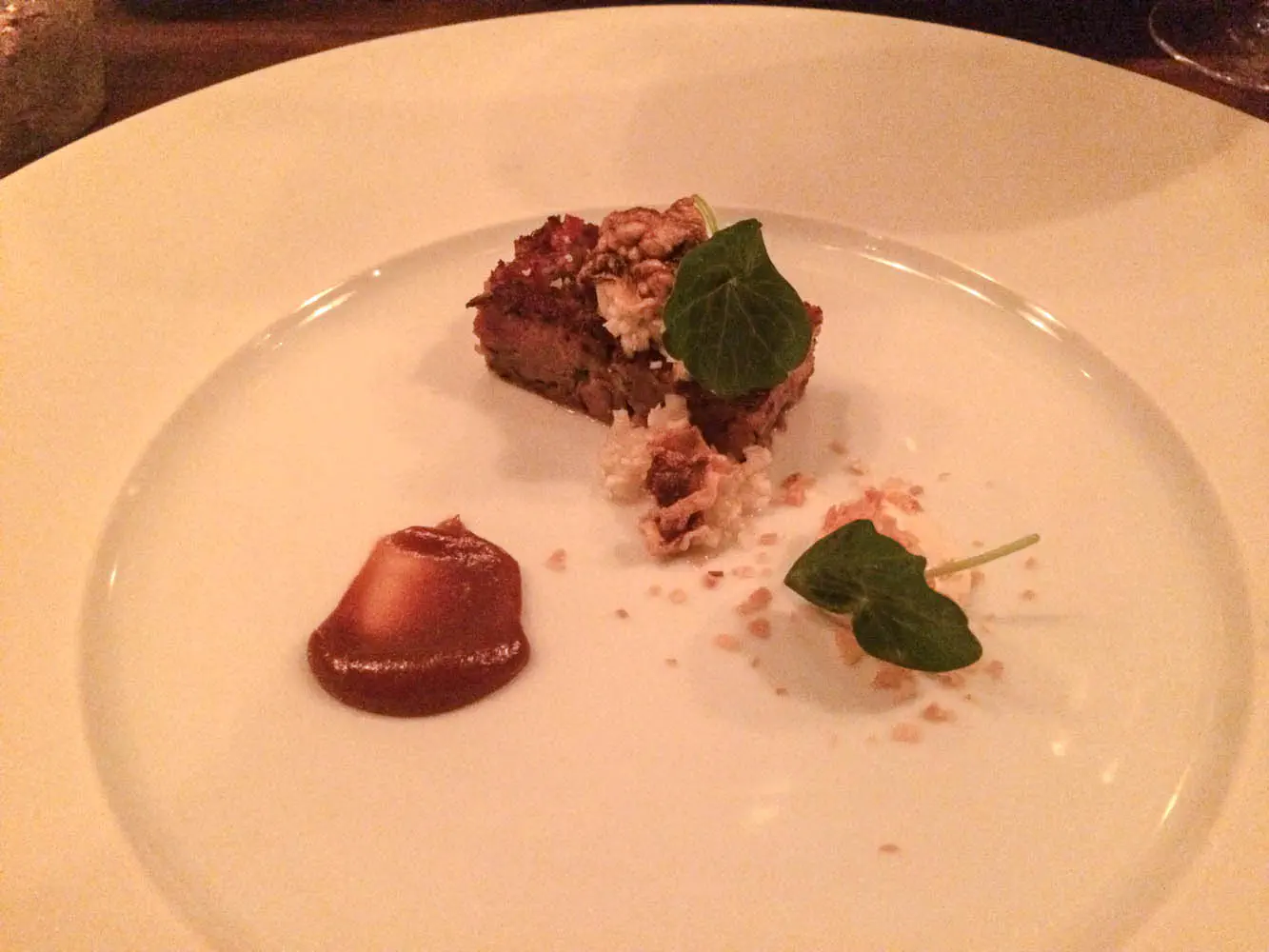 5. Pig’s Head Terrine with parsnip, parsnip toffee, and raw pear. The little pieces of pork in the terrine were very tender. There were little pieces of parsnip that adds some flavor.