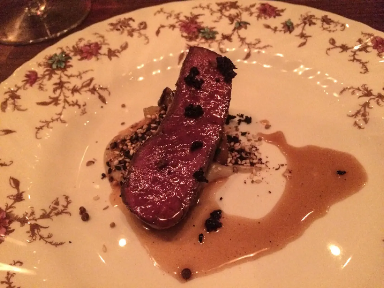 10. Venison with parsnip, matsutake, and chocolate. The venison was very tender and lean. As you can see from the picture, there was hardly any fat on it. In addition, they shaved some black truffle on top. The black truffle flavor is much lighter than white truffle, but you can still taste some slight hints of it.