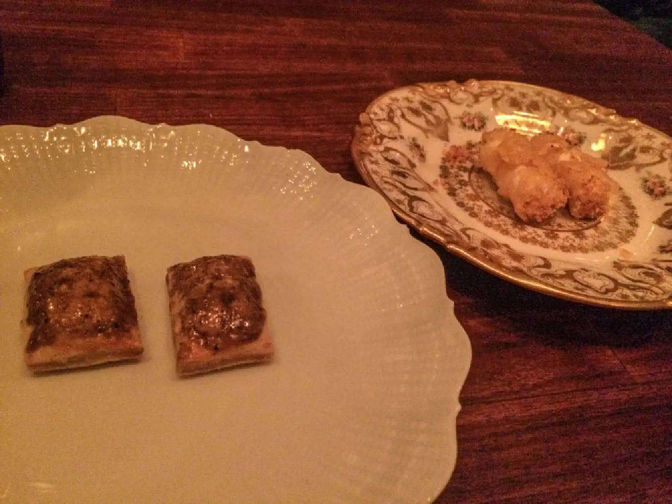 1. Truffle pop tart and parmesan crusted ricotta truffle cheese. I made some of the description up from my poor memory cells. The truffle pop tart was interesting in that it reminded me of some Chinese baked goods where the pastry was fluffy and flaky with minced meat in the middle. This one I don’t particularly remember what was in the middle. The parmesan crusted ricotta sticks were really good though. The cheese in the middle was very soft but not like liquid soft. The truffle taste was very pronounced.