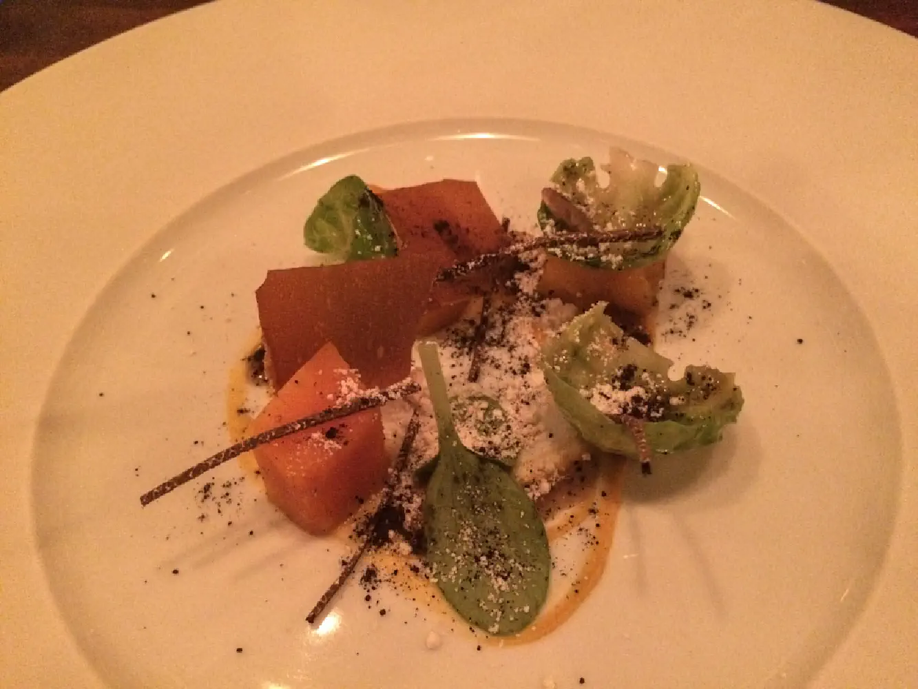 3. Squash Salad with persimmon, truffle vinaigrette, and brown butter. The flakes were interesting. I couldn’t quite make out what it was. The persimmon was very sweet as well as the squash. The vinaigrette with truffle was sublime.