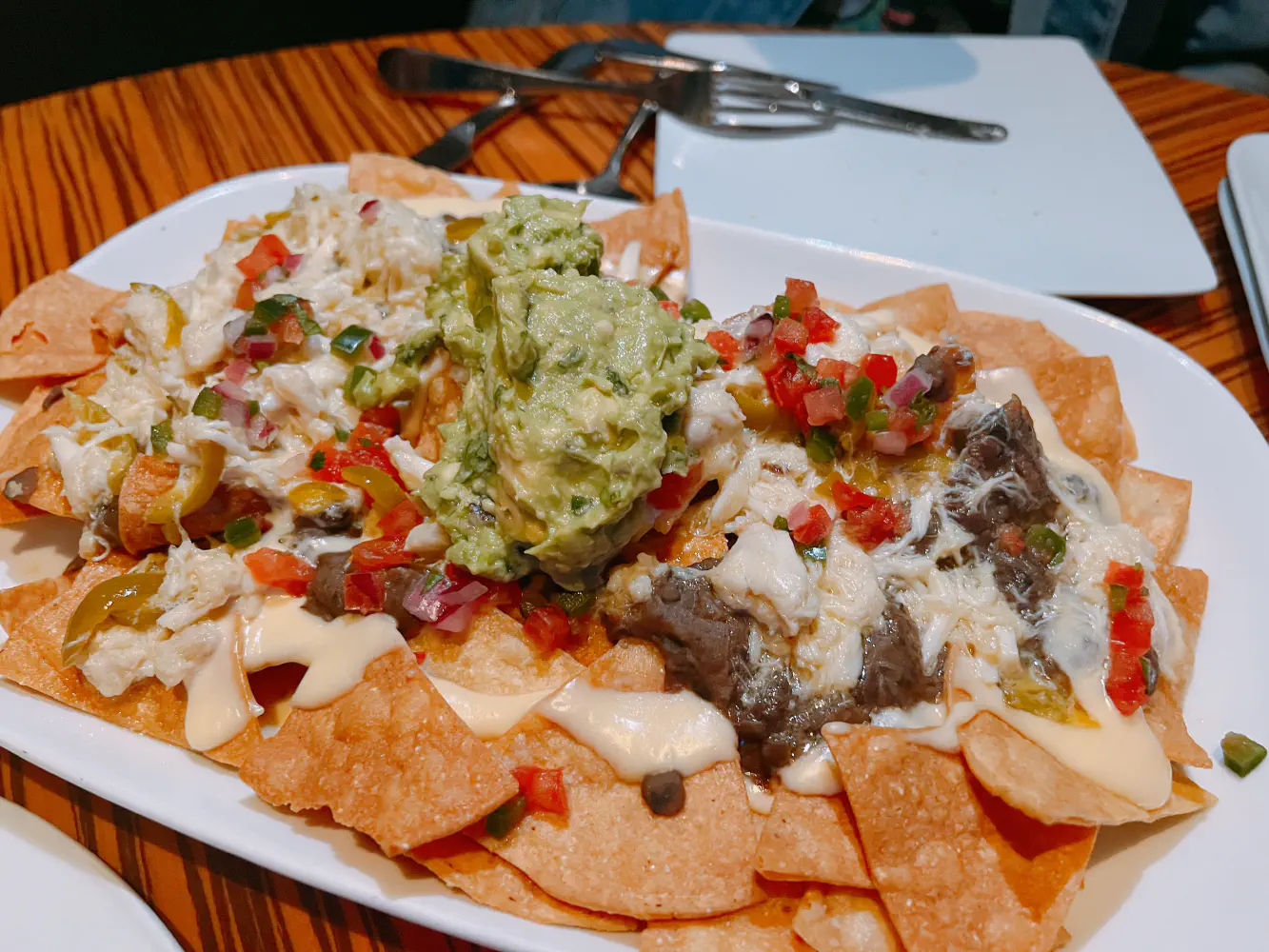 The crab nachos ($25) came with crab, black beans, pico de gallo, cherry peppers, and white cheddar. The portion size of this was surprisingly large, and it was delicious. There were pretty generous crab portions. Despite the condiments sitting on top of the chips, none of the chips ever became soggy and were crispy for the duration of its life. Arguably, this could be ordered as an entree. It was also our favorite appetizer of the four that we got.