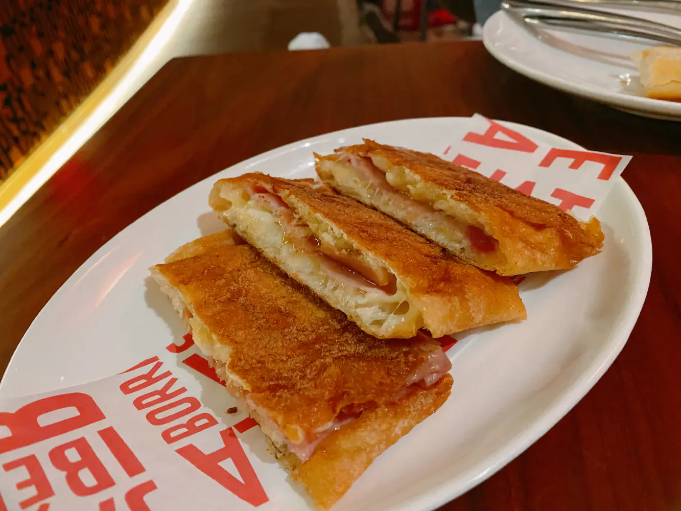 The bikini de jamón con queso Manchego which was a pressed sandwich of Serrano ham and Manchego cheese. This was actually pretty decent. The cheese was melted and does have a slight sheep gamey taste to it. But with the serrano ham, it was pretty good. I wished they gave more ham.