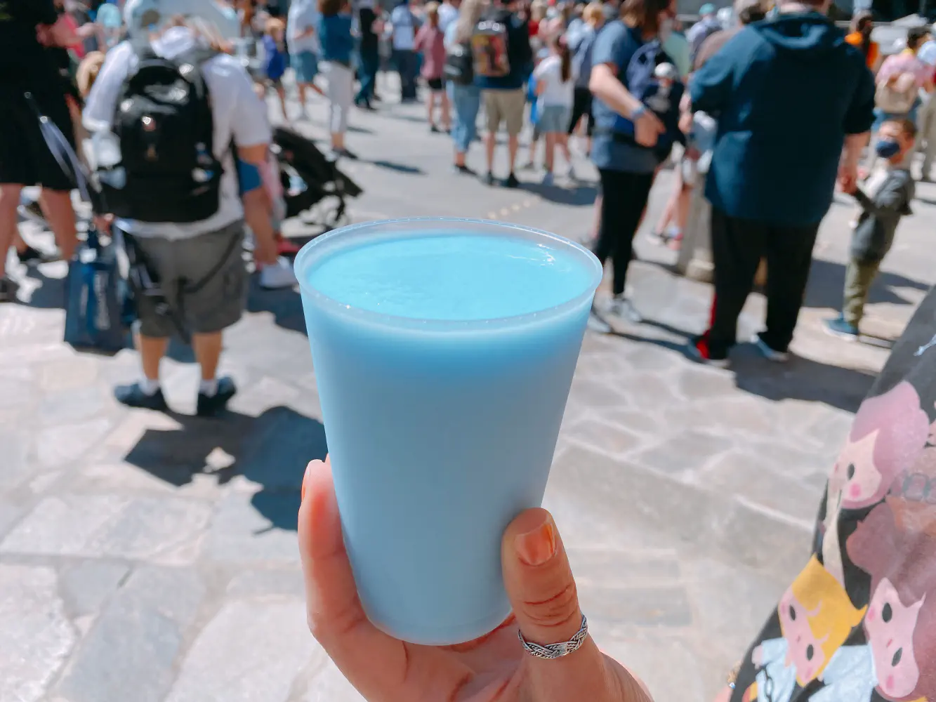 Oga’s Cantina is a Star Wars themed bar in the Galaxy Edge section of the Hollywood Studios park. It was a little confusing in figuring out where it actually was because there’s no visible sign, so we had to double check the online map on how to get there. The availability for this is insane in that you need to make reservations for this months in advance, in fact it’s advised that when you are eligible to make reservations you should do this first. Due to COVID protocols, there was a lot of social distancing and space between guests and party, but the music and theme inside was still very cool. They played cheesy Star Wars cantina themed music, and even the bartenders would roleplay a little too. We ended up seating at the bar close to the kitchen.