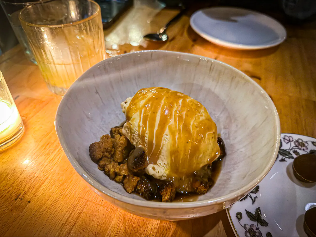 For dessert, we got the Corn Affogato (17) which was sweet corn ice cream, miso caramel, and corn “espresso”. I thought this was pretty good though my partner didn’t like it. The miso caramel was probably too odd of a creation where it was salty and sweet at the same time. The ice cream was actually not as corn-forward as I thought it’d be, but I thought it was pretty good. There were some nice crunchy pieces along the side, which reminded me of hardened, dense corn flakes.