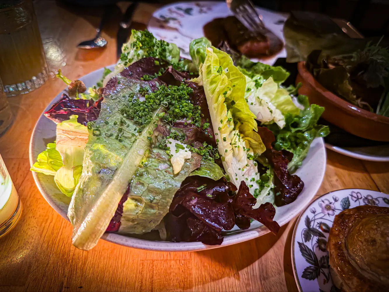 The Salad was lightly dressed with vinegar and oil. It was meant to cut through the duck fat and reset your palette. The vegetables were all very fresh, crispy, and delicious.