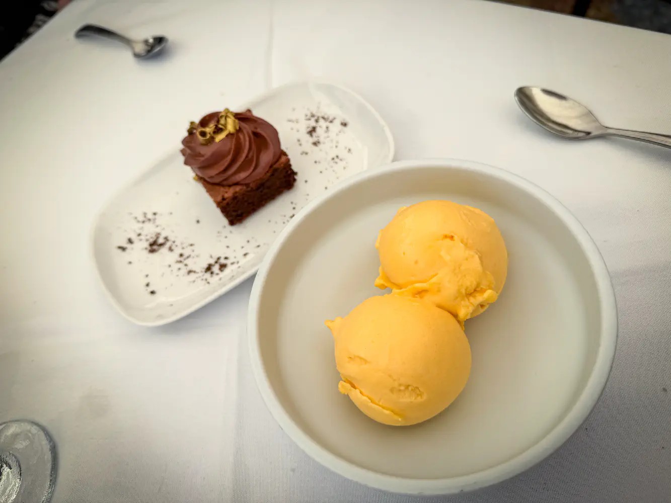 The Dessert came with brownie and passionfruit sorbet. Fortunately, the brownie was decent. It was a bit on the sweeter side, but if you dip it into the passionfruit sorbet, it levels the sweetness. If you try the sorbet by itself, you can taste that it was actually tart with added sugar to it. If anything, it tasted OK, but far from delicious.