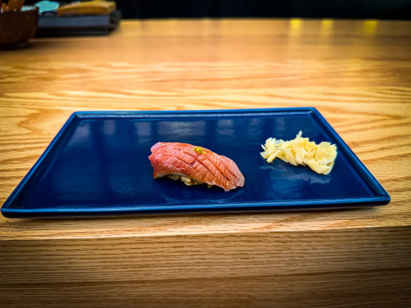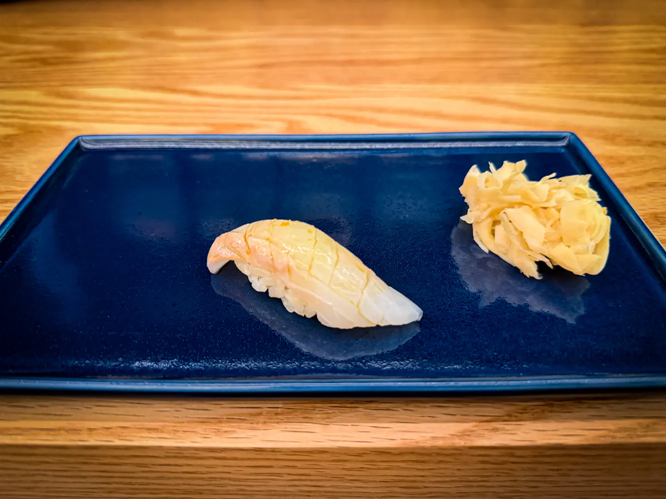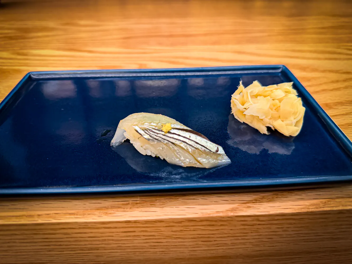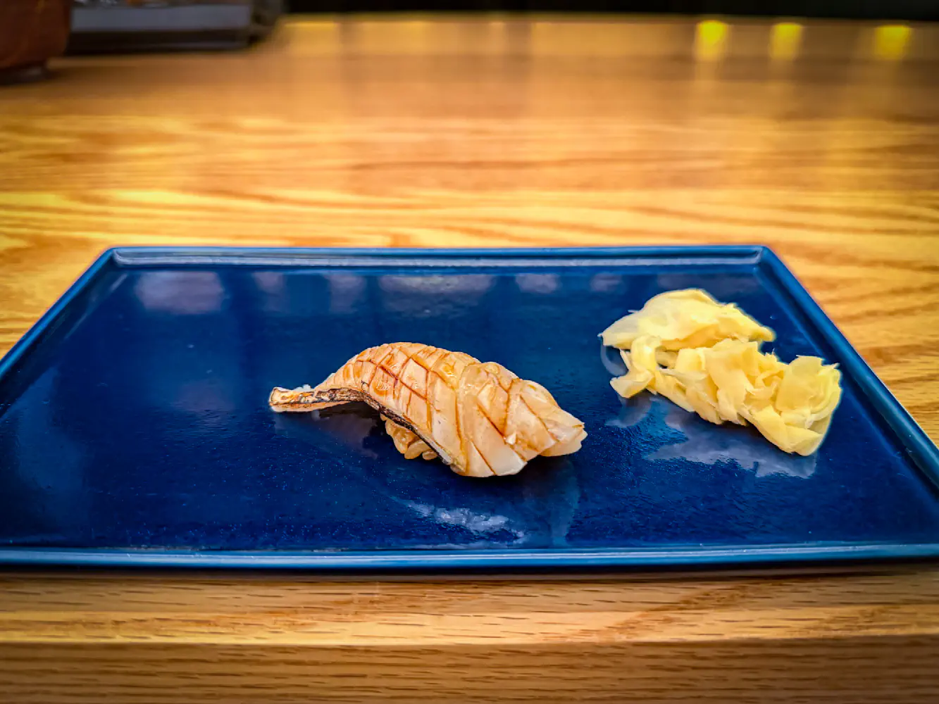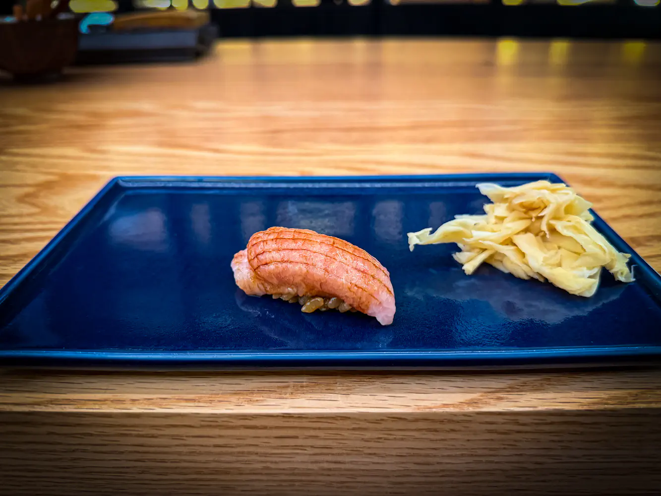 The Spanish Mackerel (sawara) sushi was rich, oily, and slightly sweet in flavor with a tender texture. Typically if served not fresh, it will come off quite fishy, but there was none of that. Surprisingly, my partner really enjoyed this when they typically can detect fishiness very quickly.