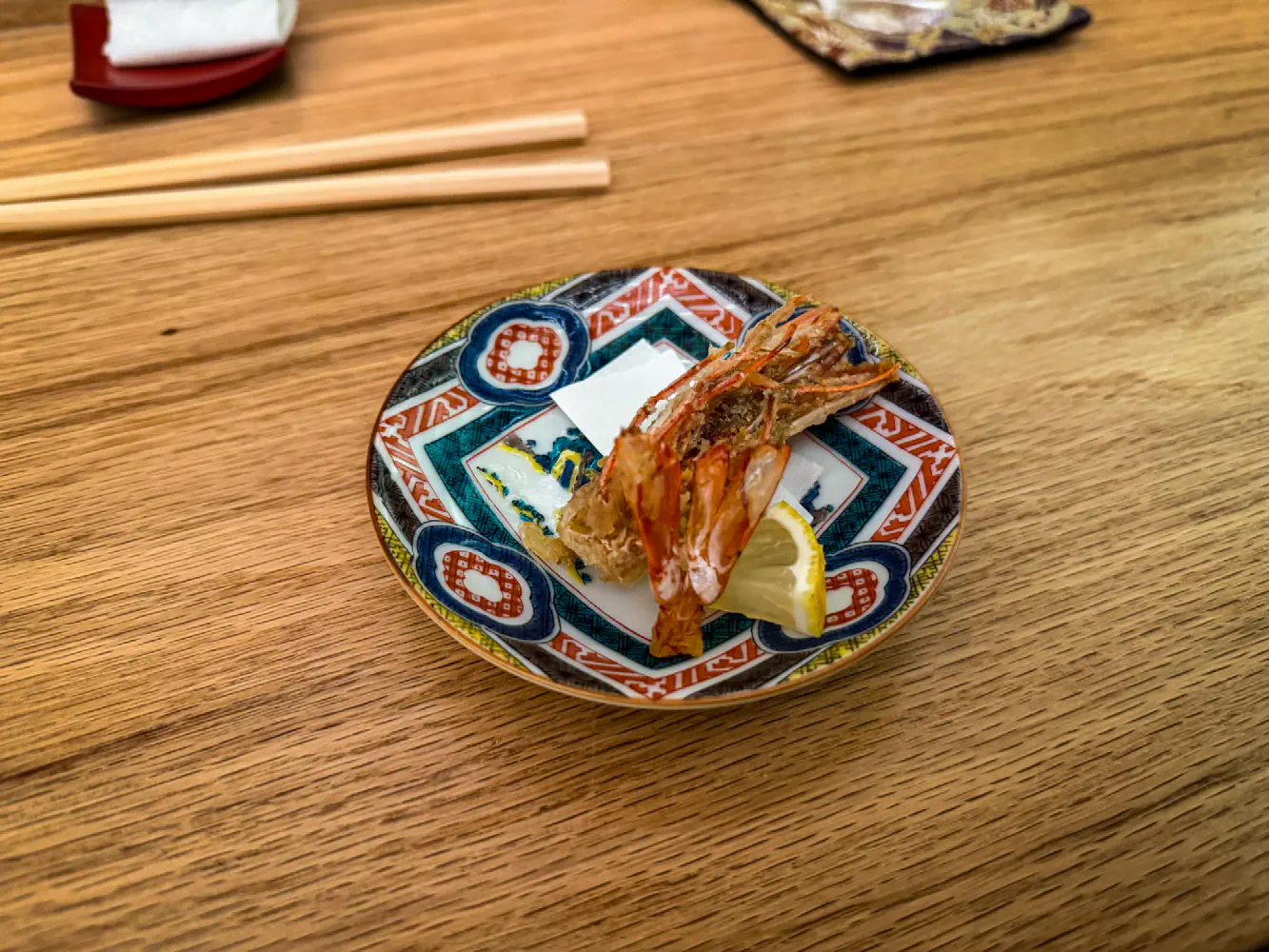When the chef was gutting the ebi, he set aside the head and tail. Here are the components deep fried and served with a small lemon wedge. Whatever batter they use to fry the foods in was absolutely spectacular.