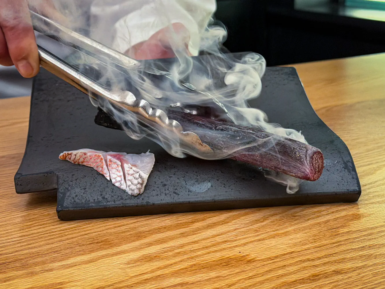 They were preparing coal to char our next sushi. They told us that they prefer more natural means of charring instead of using gas canisters. When they touch the side of the fish with this, it made this nice sizzle, and the flavors of this coal was aromatic in its own way.