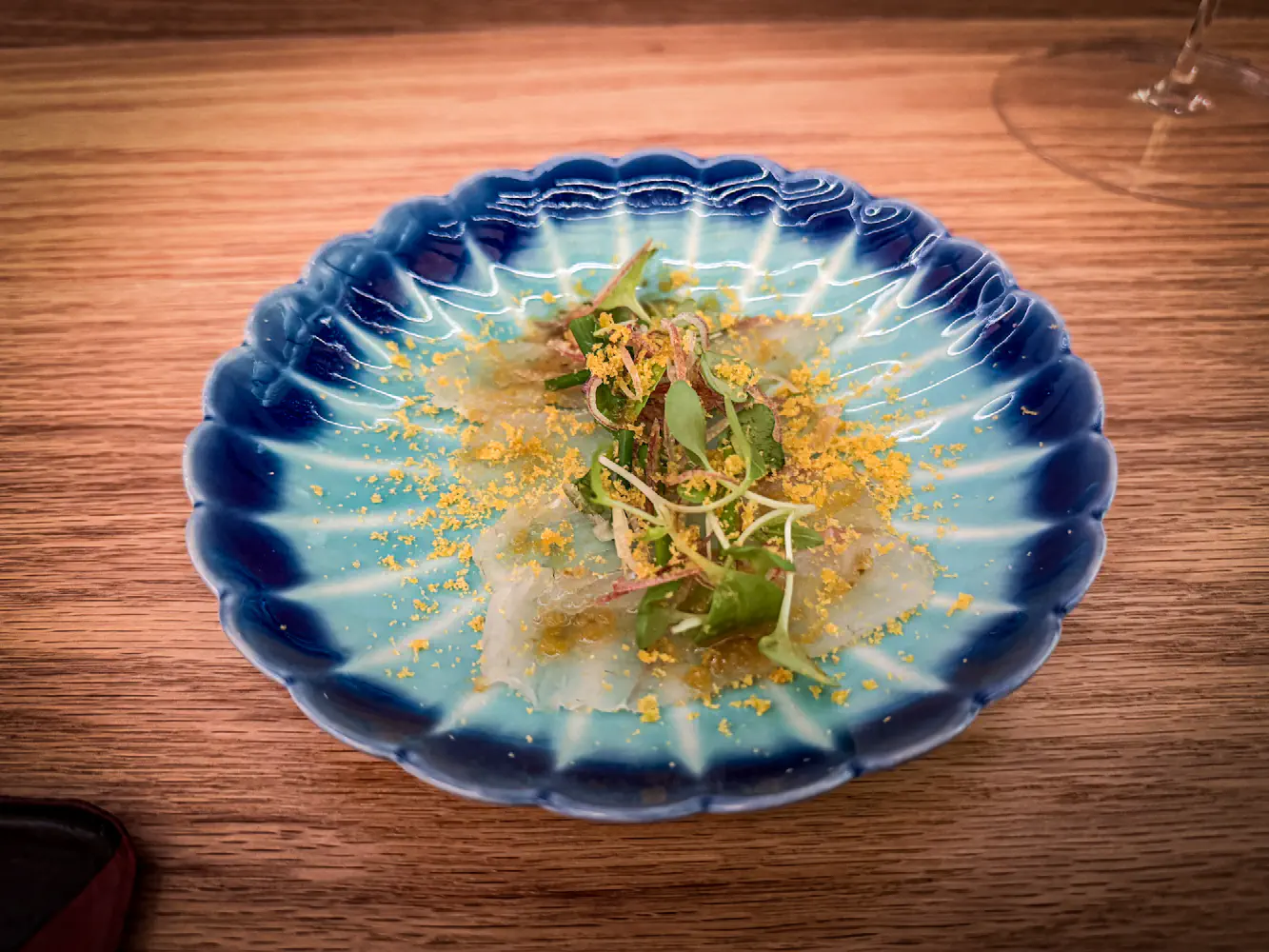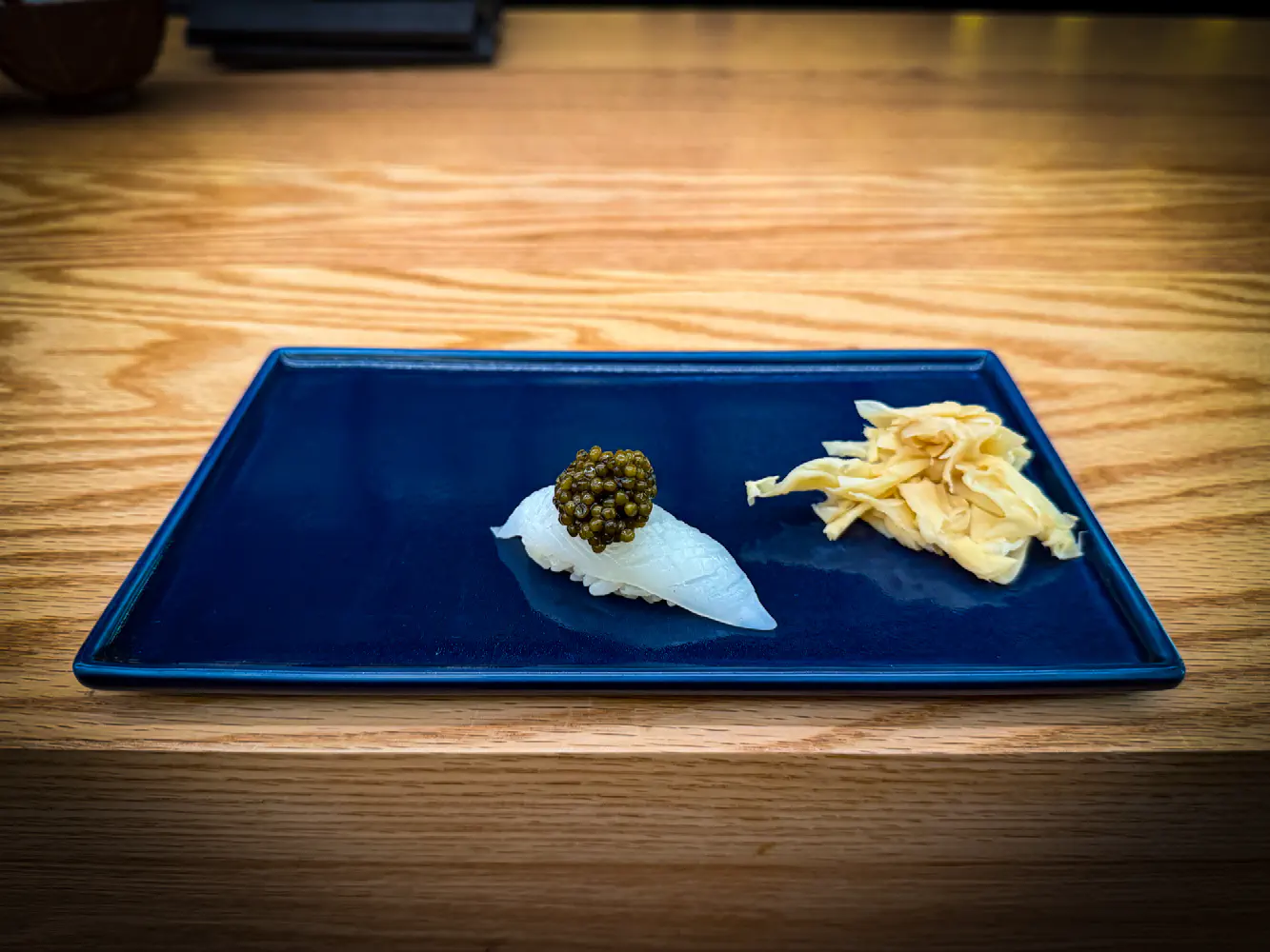 The White Fish (???) with lemon zest was very tender, sweet, albeit very similar to many sushi pieces you’ve probably had at various omakases.