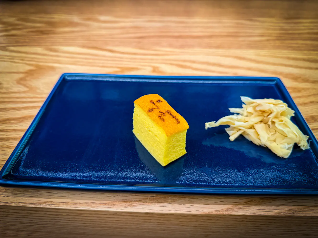 The Tamago was basically a sweet egg omelette. What was interesting in this one was the texture was incredibly soft with very distinct layered textures going on. It had a consistency of those sweet roll cakes you might find in Asian bakeries, but instead you knew that this was made from egg.