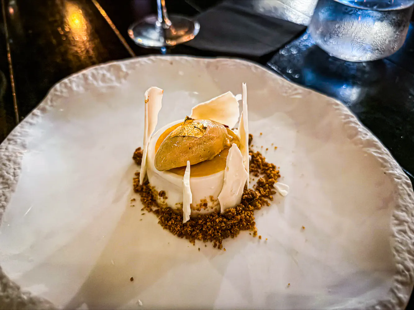 The White Ember came with coconut semifreddo, passionfruit curd, soy crumble, white chocolate, soy ice cream, and passionfruit veil. This dessert was interesting because the white chocolate shell was not super sweet and neither was the rest of the ingredients. In the middle of this was a passionfruit liquid that was pretty good.