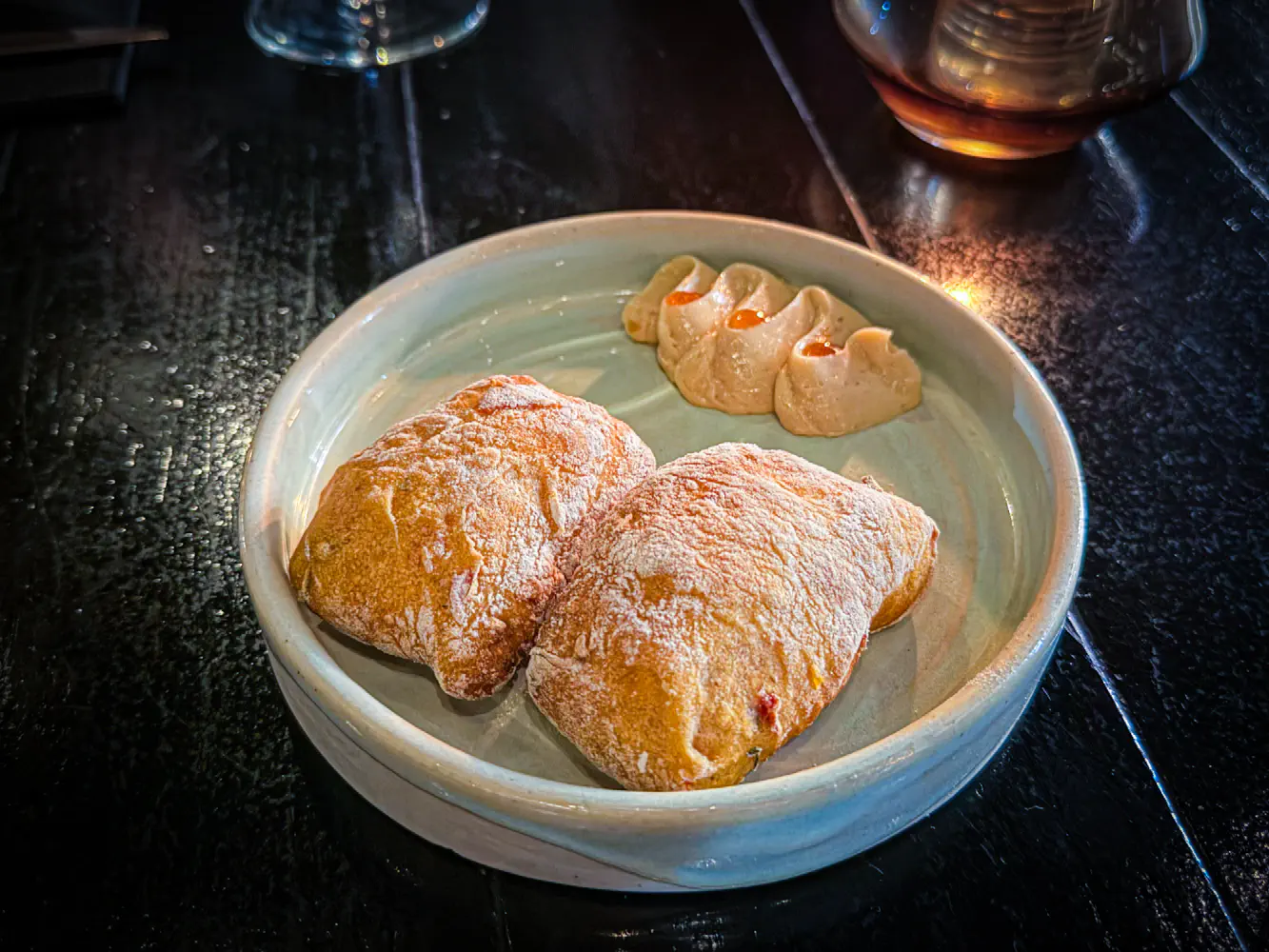 The Truffled Jalapeno Cheddar Fritter (right) came with truffle emulsion and winter black truffles. The truffle flavors on this were very mild. It was earthy and not pungent. The cheddar was fairly prominent.