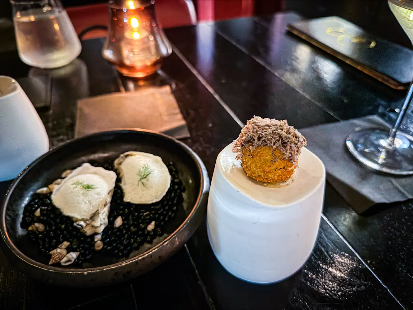 - 2nd & 3rd Course - Truffled Jalapeno Cheddar Fritter and Florida Oyster