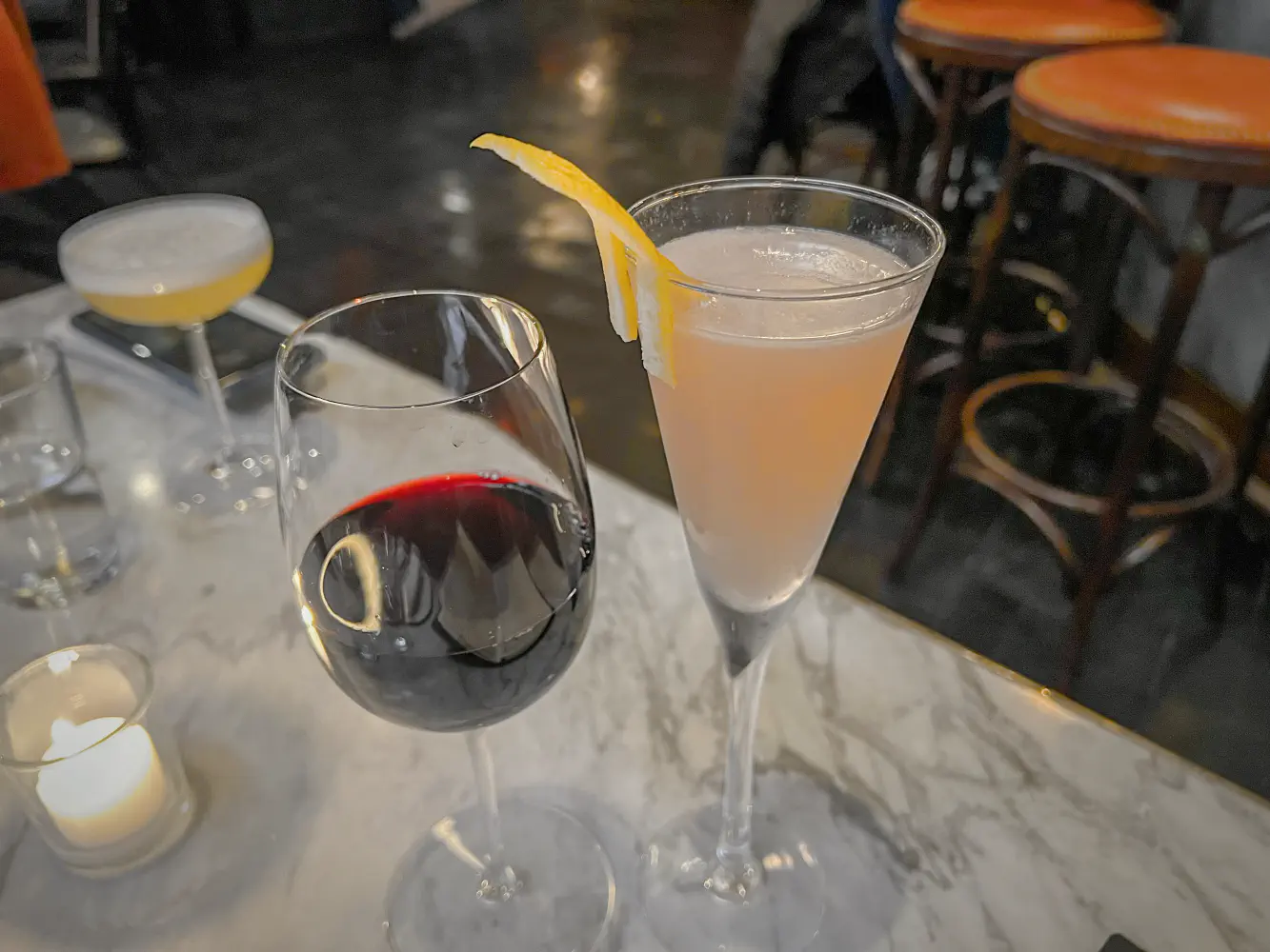 The Cosmo Royale ($20 - right) came with Meyer Lemon Vodka, Cointreau, lime, Cocchi Americano Rosa, and Prosecco. I’m not big on cosmos since this was also quite sweet, but my partner enjoyed it.