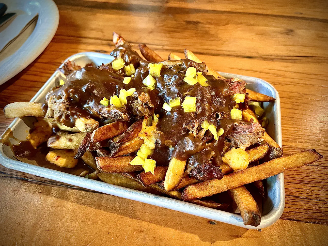 The interior reminds me a bit of a rowdy barn with televisions near the bar for sports and a takeout line for to-go orders. The ambiance is pretty loud and very communal like.
