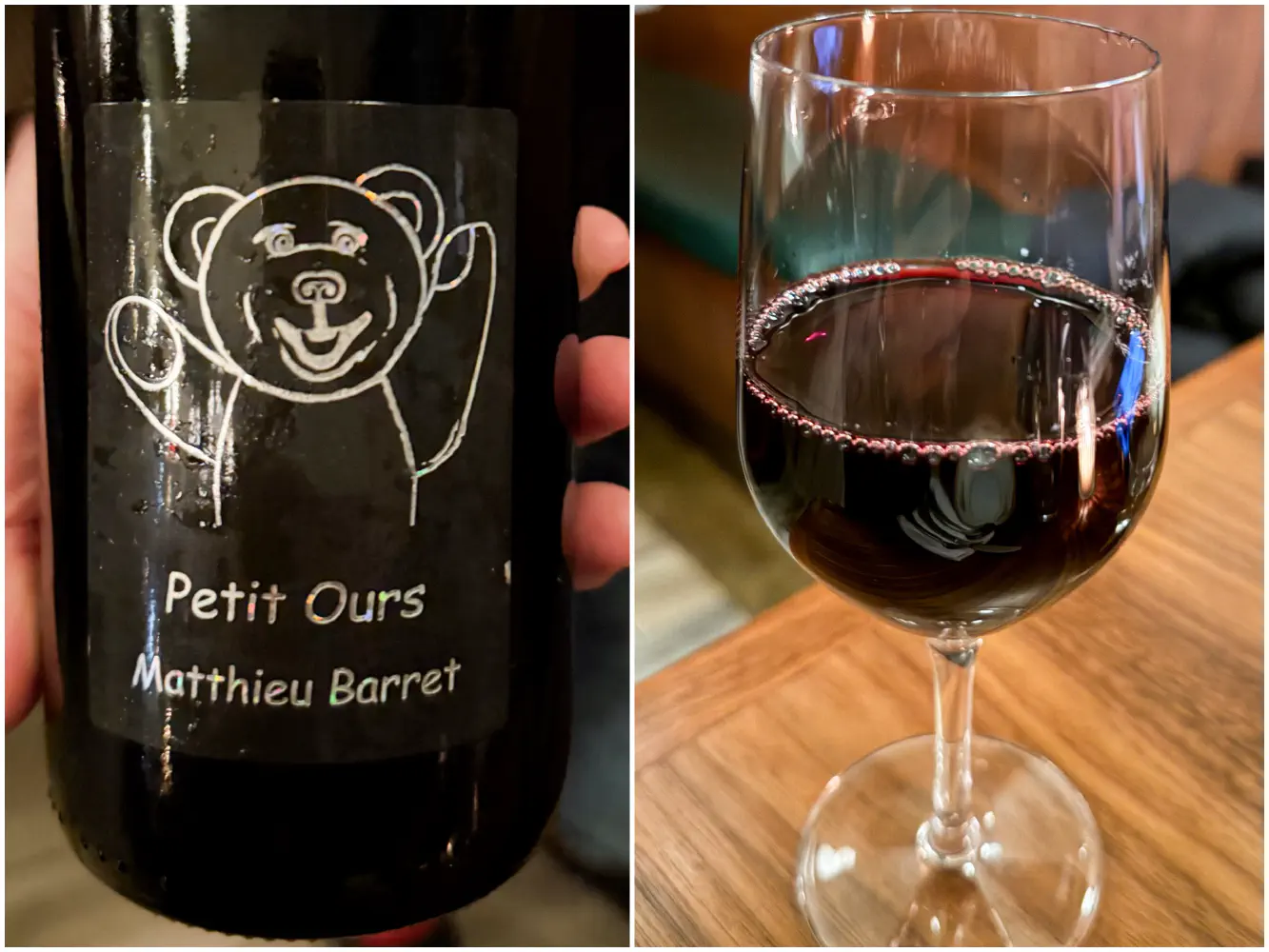The glass of Syrah “Petit Ours” ($17) came from Mathieu Barret, Cotes du Rhone, France 2023. This syrah had a nice berry finish to it. It was very smooth and medium body.
