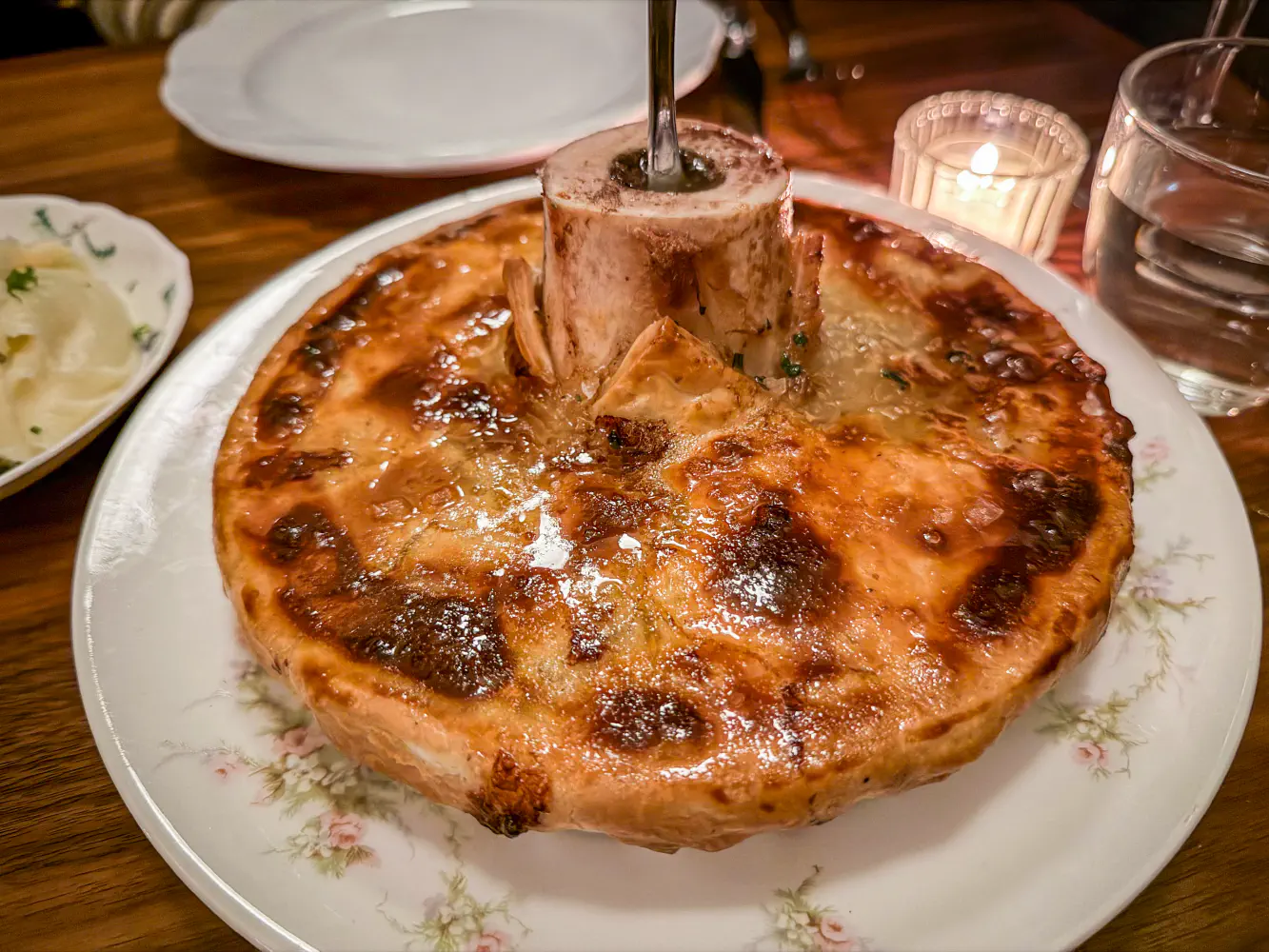 The short rib, carrot & stilton pie ($60) was intended for 2 people and came with mashed potatoes. This was very delicious. There was a lot of short rib in this, and the pie crust was very flavorful. It was not as big as I thought, but the food was quite rich, especially with the marrow in the center. We ended up finishing this, but I was already super full and feeling extremely lethargic.