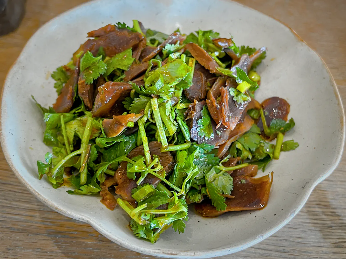 The Chewy Chicken Gizzard ($12) came with chicken gizzard, scallion, cilantro, and chili oil. This was surprising to me because I thought it’d be smaller gizzards and have that crisp. The texture turned out to be more chewy like regular meat and not crunchy as I was expecting. Despite that expectation, this is loaded with aromatic leaves that give it a good counterbalance. The chili oil, as always, gives it a nice kick that’s not too spicy.