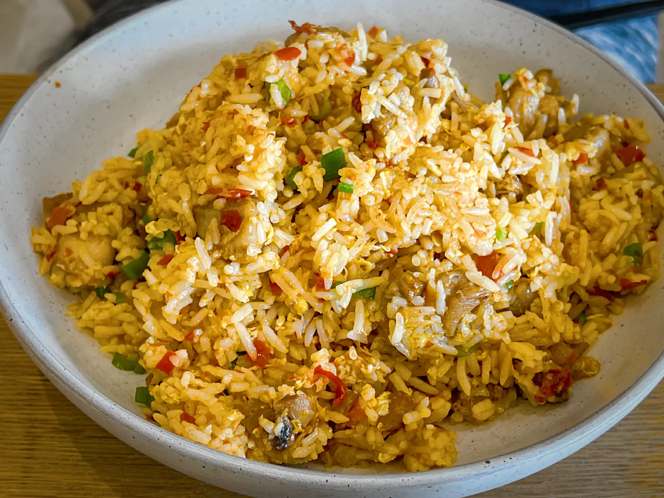 The Spicy Chicken fried rice ($14) came with chopped chicken, fresh veggies, scallions, and cilantro in a homemade chili sauce. The portion size of this was great, and my partner had to bring much of it home. This fried rice reminded me of it having some chili garlic sauce mixed into it because it was both sweet and spicy. I did find after a few bites that I was tired of eating it because the flavor was more one-dimensional.